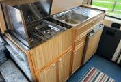 The Kitchen Area has a Hob, Grill, Sink plus 3 Way Fridge Freezer