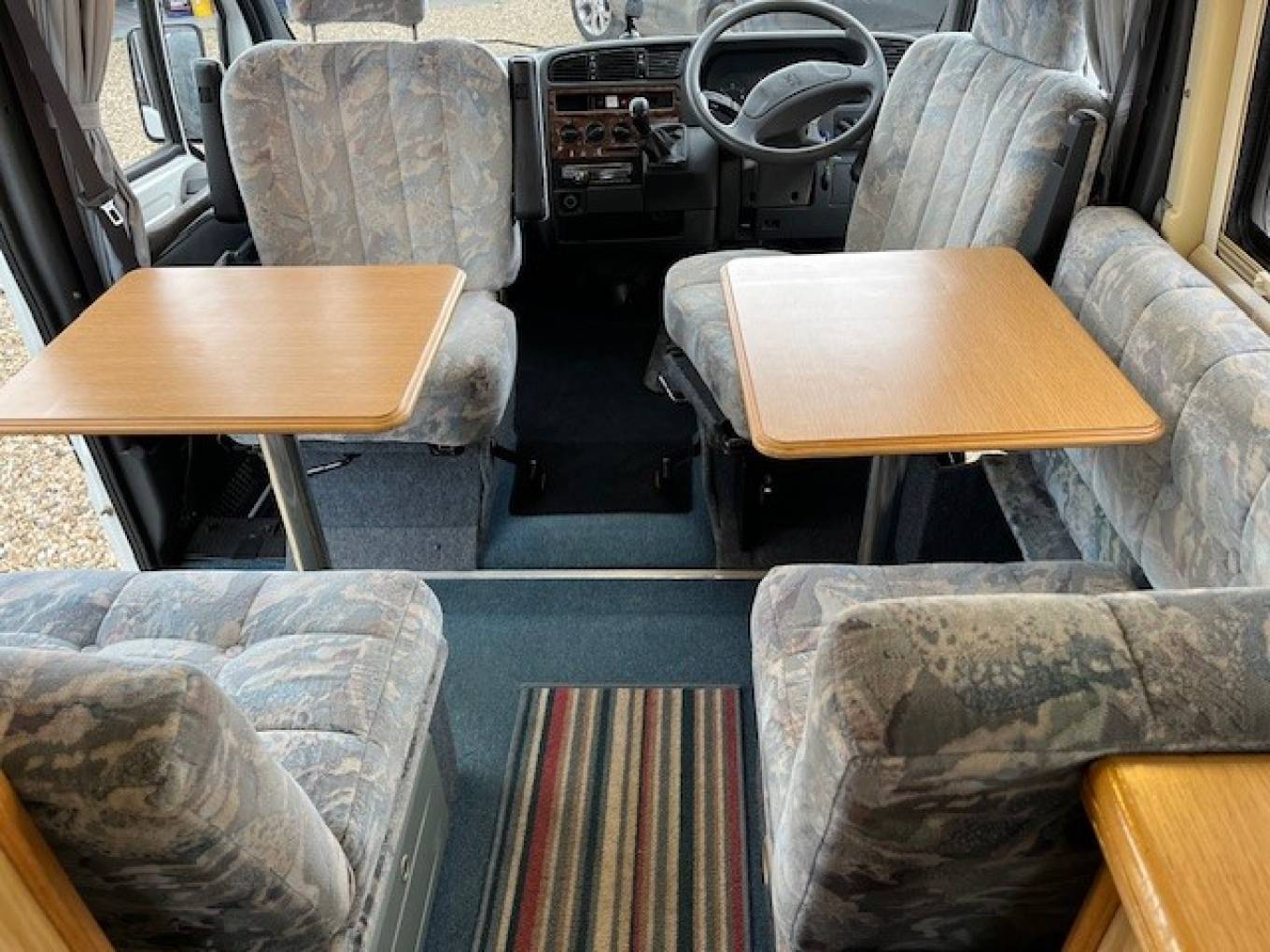 Spec includes, 4 x Travelling Seat Belts - option to have bench seat or forward facing seat in seconds, Propex Fan and gas Heater, Carver Gas and 240V Hot Water System, Radio, Immobiliser, Gas Bottle, Levellers, Outdoor Awning Rail, Cover, Silver Screens, 2 x Tables plus Chrome Legs, Rear Step, Swivel Cab Seats, Sky Vents, Spare Wheel, Blinds and Flyscreens, Clever Storage Space Throughout