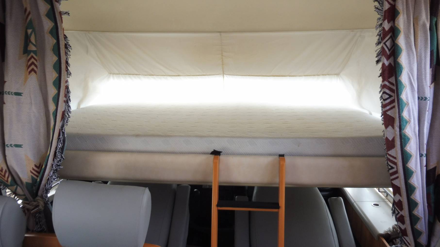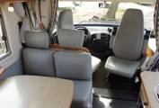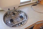 Arrive on pitch, swivel the captain’s seats and relax. The full dinette offers 4 additional seat belts allowing 6 people to travel in total. All the seating has been re-covered in a pale grey leatherette which complements the cabinet highlights. The whole space has a light and airy feel as a result.