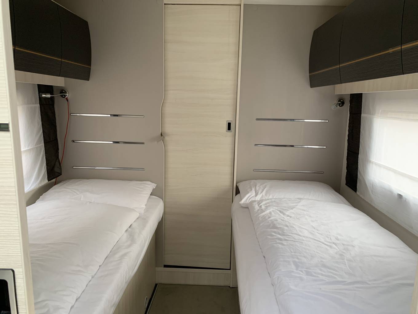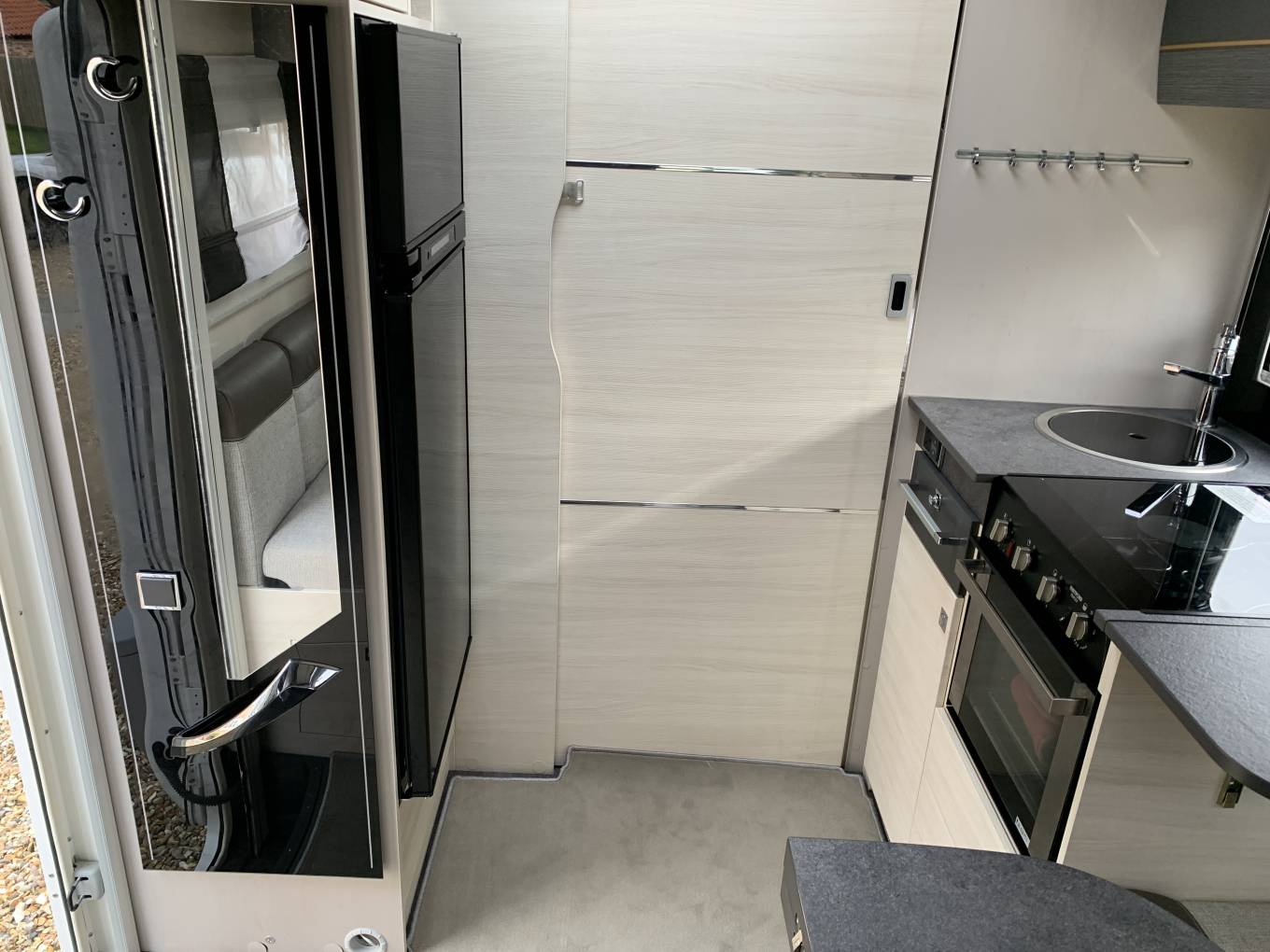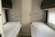 It offers flexible living with an ingenious design featuring a rear washroom with seperate shower cubicle, fixed single beds and a fully equipped mid kitchen.