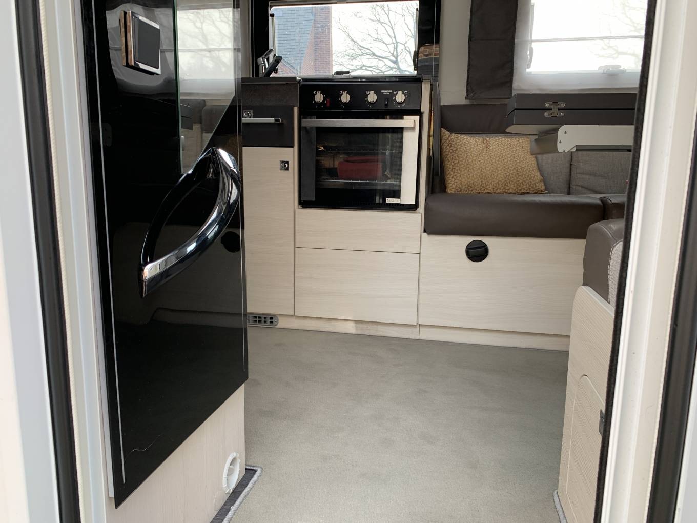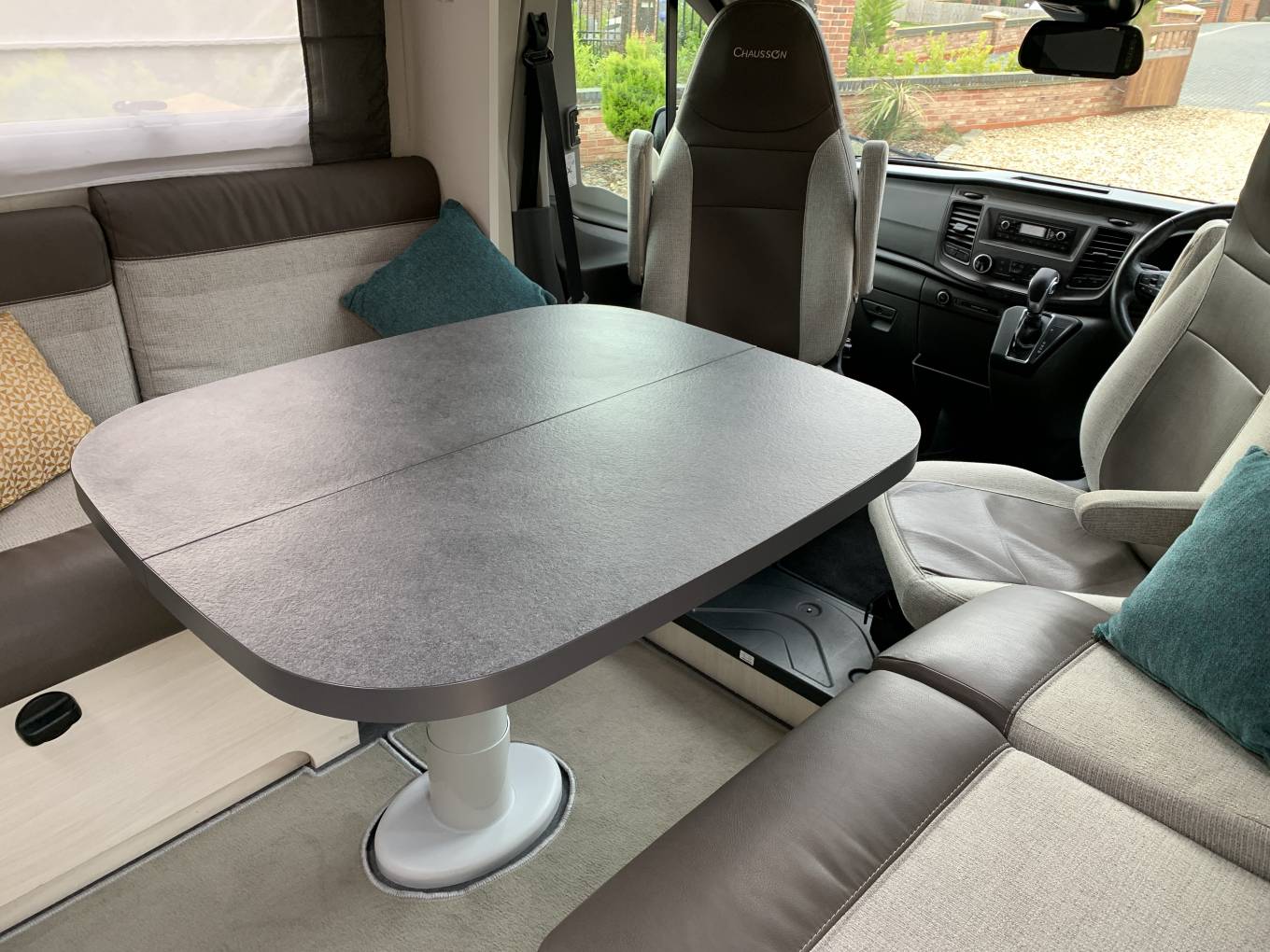 The cab is equipped with Air-con, Cruise Control, Reversing Camera and Blue Tooth Connectivity and full Remis built in cab blinds. A motorhome specific Sat-nav is also included in the sale.
