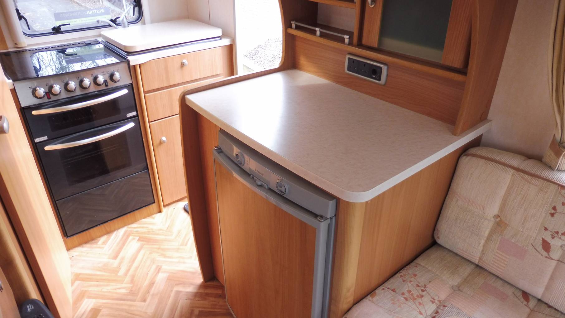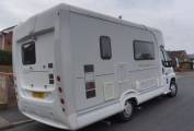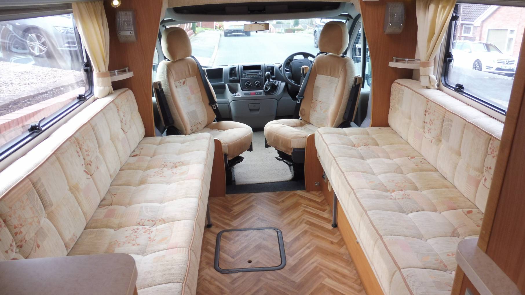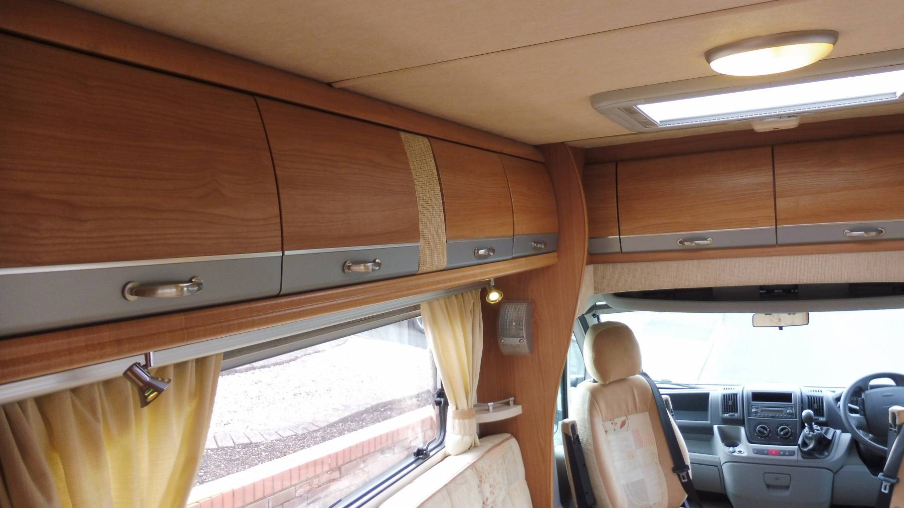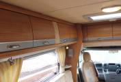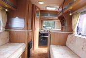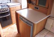 The habitation door is at the rear of the motorhome where you first come into the well-equipped kitchen area with a full oven, grill, dual-fuel hob and preparation worktop covering the sink. The motorhome also has a 3-way fridge freezer, generous worktop space and plenty of cupboard storage for all your ingredients and cooking utensils, an ideal area to prepare the perfect meal to enjoy when you are away.