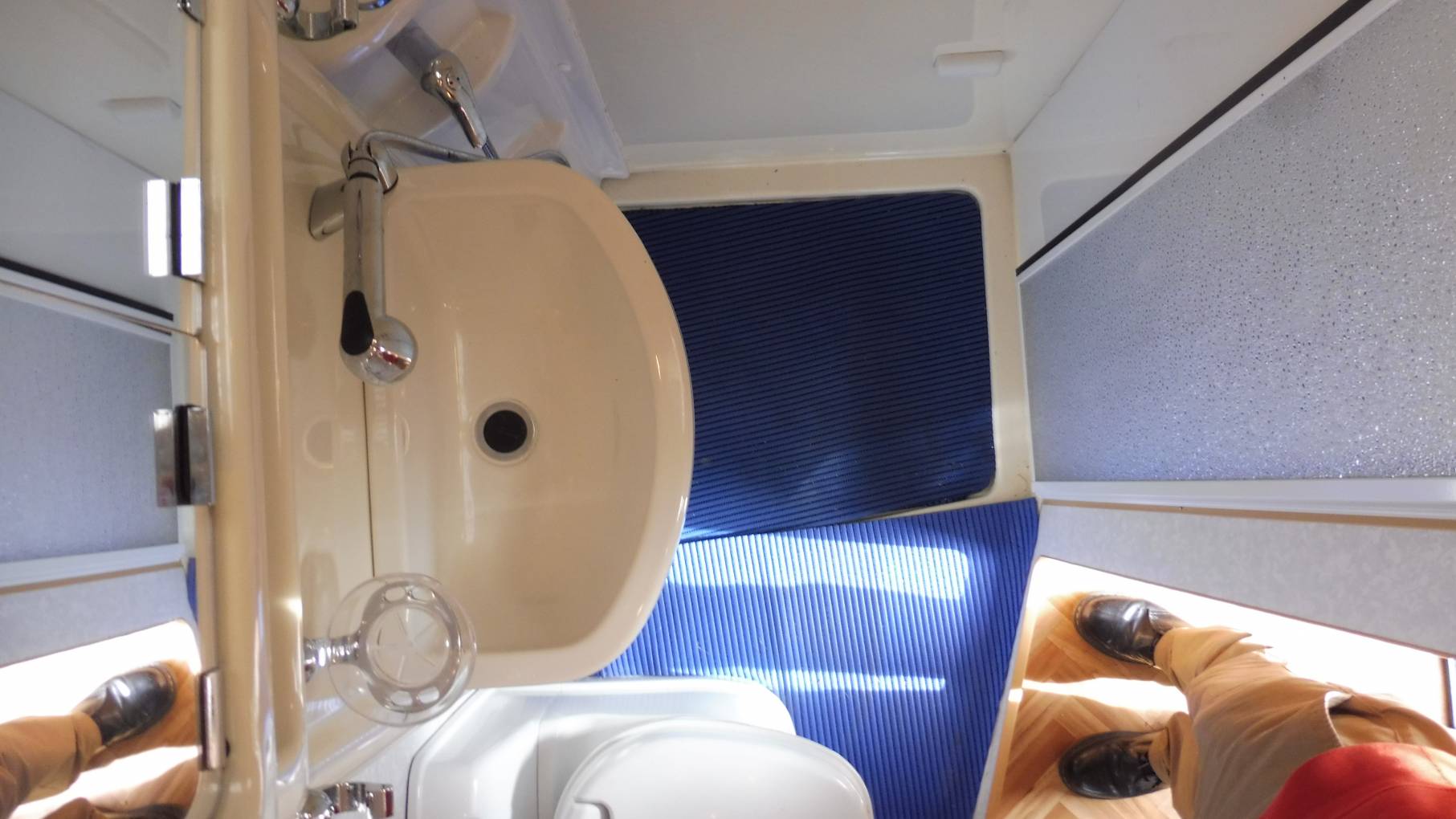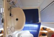 The washroom is a good size and offers a Thetford cassette flush toilet, sink and shower which can be isolated with a movable wall. A nice touch has access to the cupboard outside the washroom to keep your towels dry.