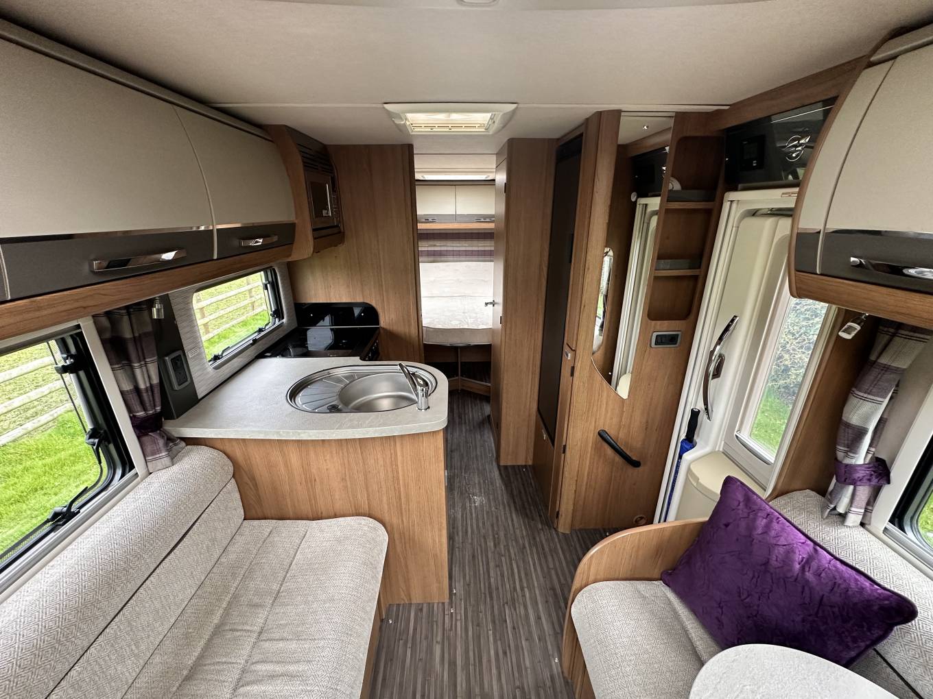 This Motorhome offers an excellent rear fixed island bed layout with plenty of space and storage.