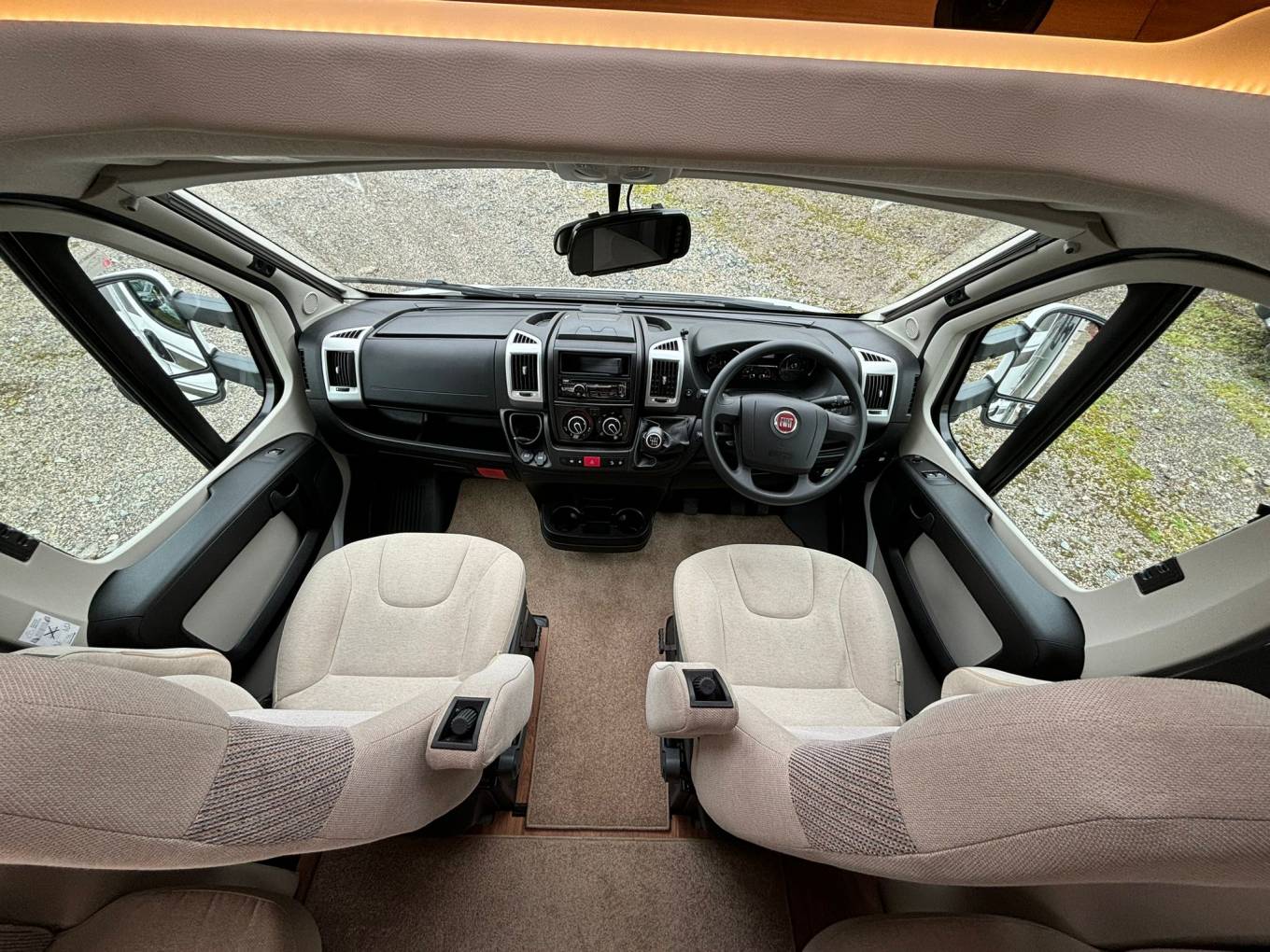 Built on the Fiat chassis this Motorhome has a 2.3 litre diesel engine and a manual 6-speed transmission with 150BHP. The overall length is 6.8 meters, and can be driven on a standard license. This Motorhome has been very well looked after inside and out and is a credit to the current owners. All the internal features have been kept to a high quality and the Motorhome feels clean and well presented as soon as you enter the habitation door.