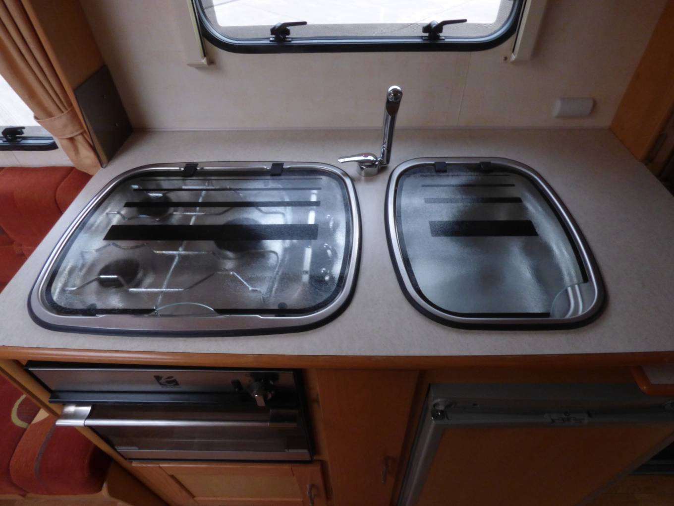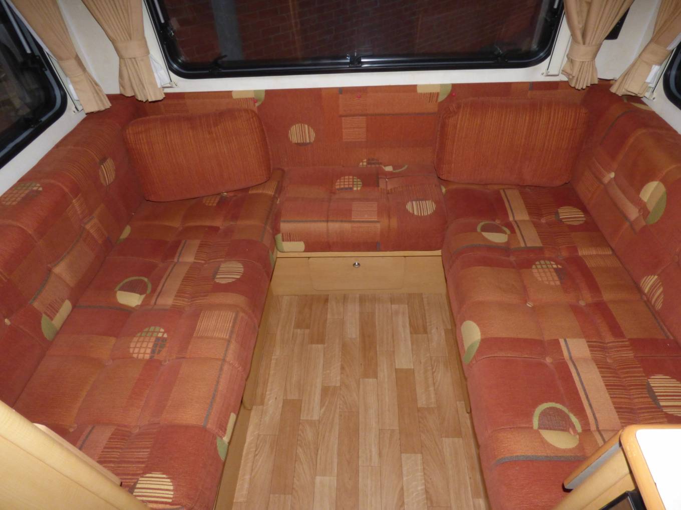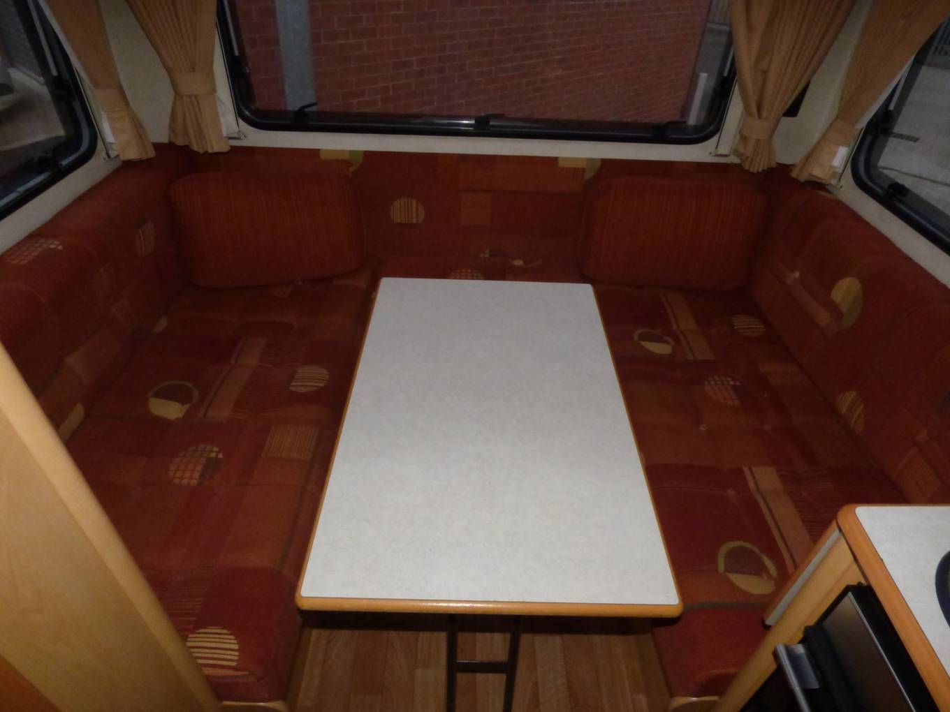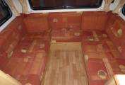 The U shaped lounge is the main feature of the motorhome with a large skylight and three surrounding windows creating a very light and open atmosphere. The two large bench seats form a large double bed at night but with the removable table, stored in the wardrobe, it quickly converts to a comfortable dining and socialising area.