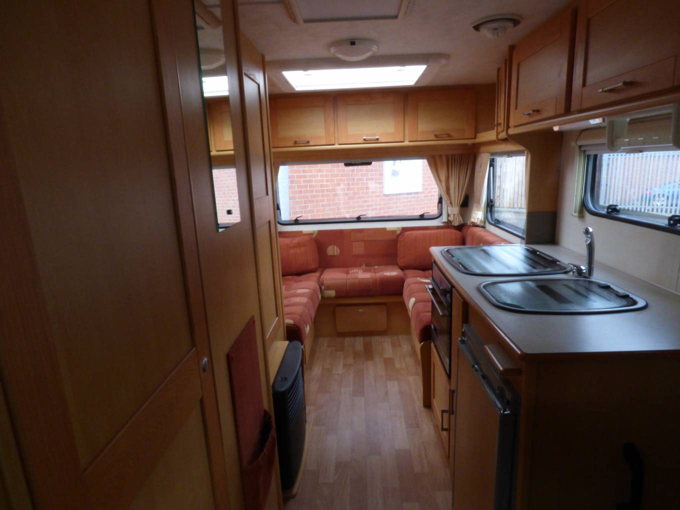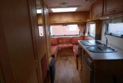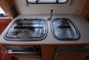Very well maintained example of this ever popular 2 berth sub 6 metre motorhome with large and airy rear U shaped lounge with only 40,000 miles on the clock. The vehicle has 2 seat belts and the passenger seat swivels. The kitchen has extending preparation area, 4 ring hob, combined oven and grill and a fridge with freezer compartment. Opposite is a washroom with shower tray, w.c. and foldaway sink making maximum use of the area. A large wardrobe with hanging rail is next to the washroom and the motorhome benefits from a satellite dish which when coupled with a digibox or similar expands horizons in terms of available entertainment. With overhead lockers all around the rear of the spacious lounge there is plenty of storage space for the longer trip.