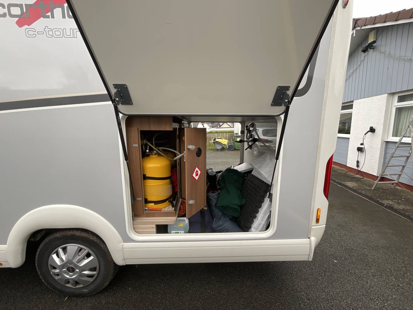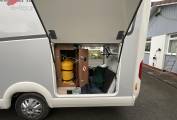 The cab area is well equipped with cruise control, air conditioning, Pioneer entertainment head unit, two swivel seats and privacy blinds to the both side door windows and front screen. The outside of the van is eye catching with its light and dark grey colour scheme with a red fleck through out,It has a Solar panel, 2000w inverter, Maxview satalite dome, two large rear garage doors (one on each side) a large side locker, gas cupboard compartment for two gas bottles both with Gaslow refilable LPG, toilet waste door with a built in sog that vents through the roof.This van has everything to travel in style and comfort. The van will be having a new service and Habitation prior to sale.
