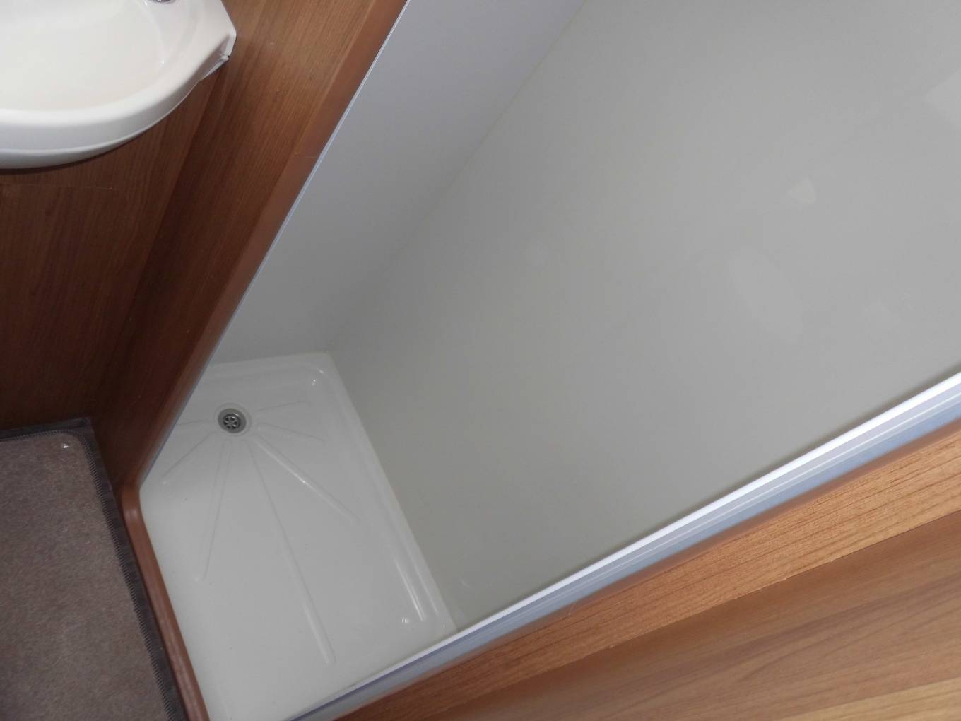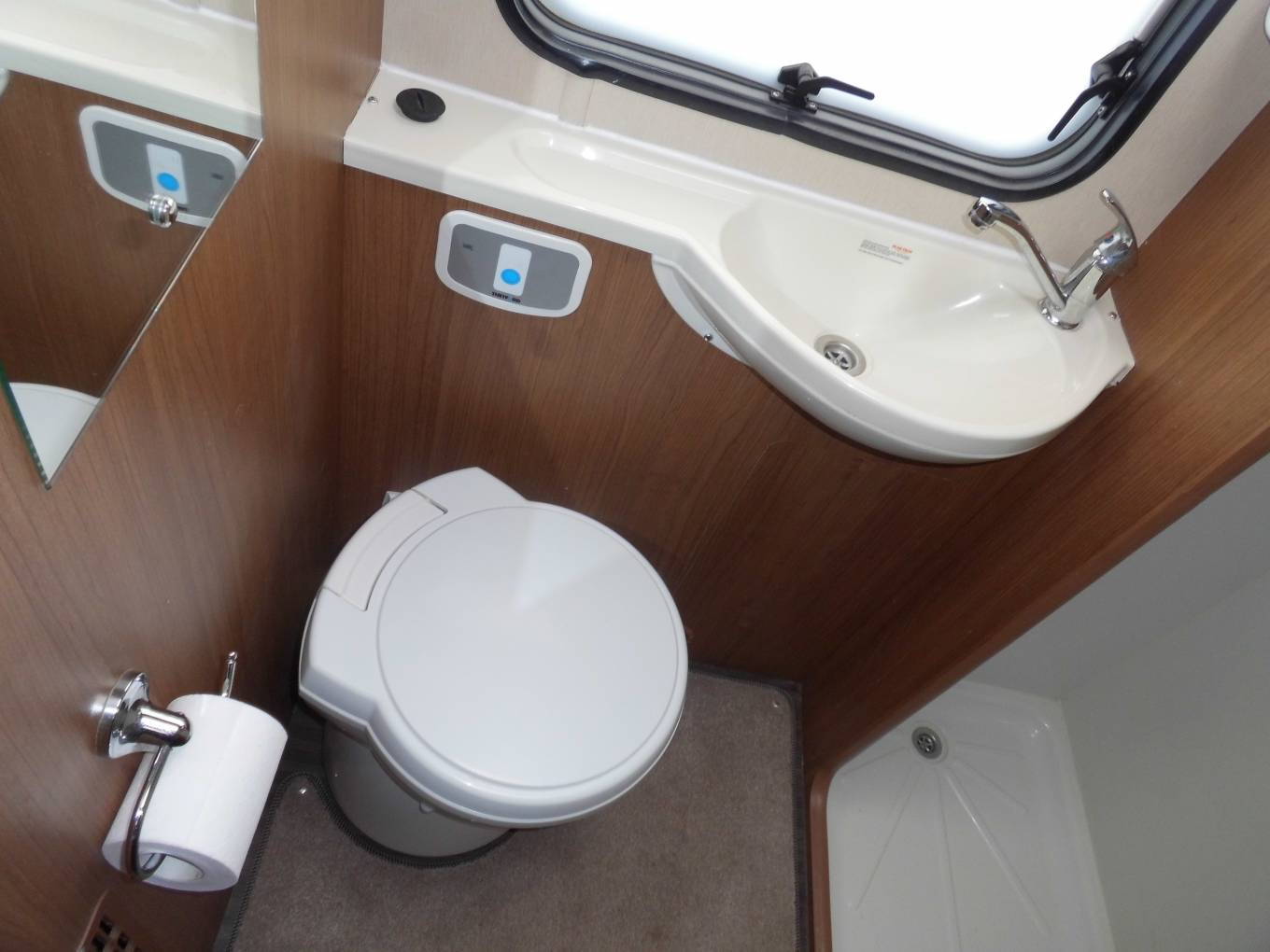 The washroom is situated adjacent the kitchen and offers a separate shower cubicle, hand washbasin with vanity unit and Thetford cassette toilet.