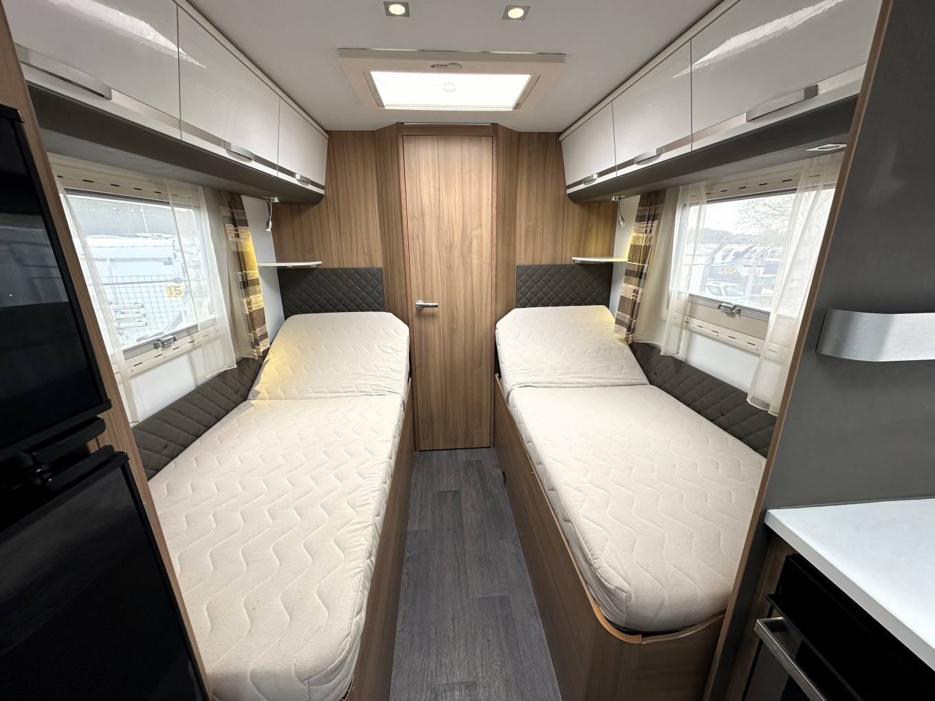 To the rear, you will find the twin single fixed beds which are