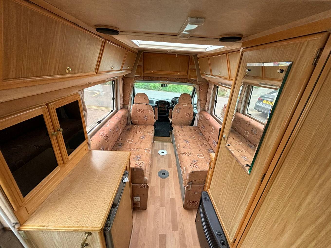 Built on the Peugeot chassis this motorhome is powered by a 2.8 Litre diesel engine and a manual 5-speed transmission. The overall length is 5.8 meters long and can be driven on a standard UK license and stored with ease. One of the major features of this motorhome is the Monocoque body which means it is built in one piece.
