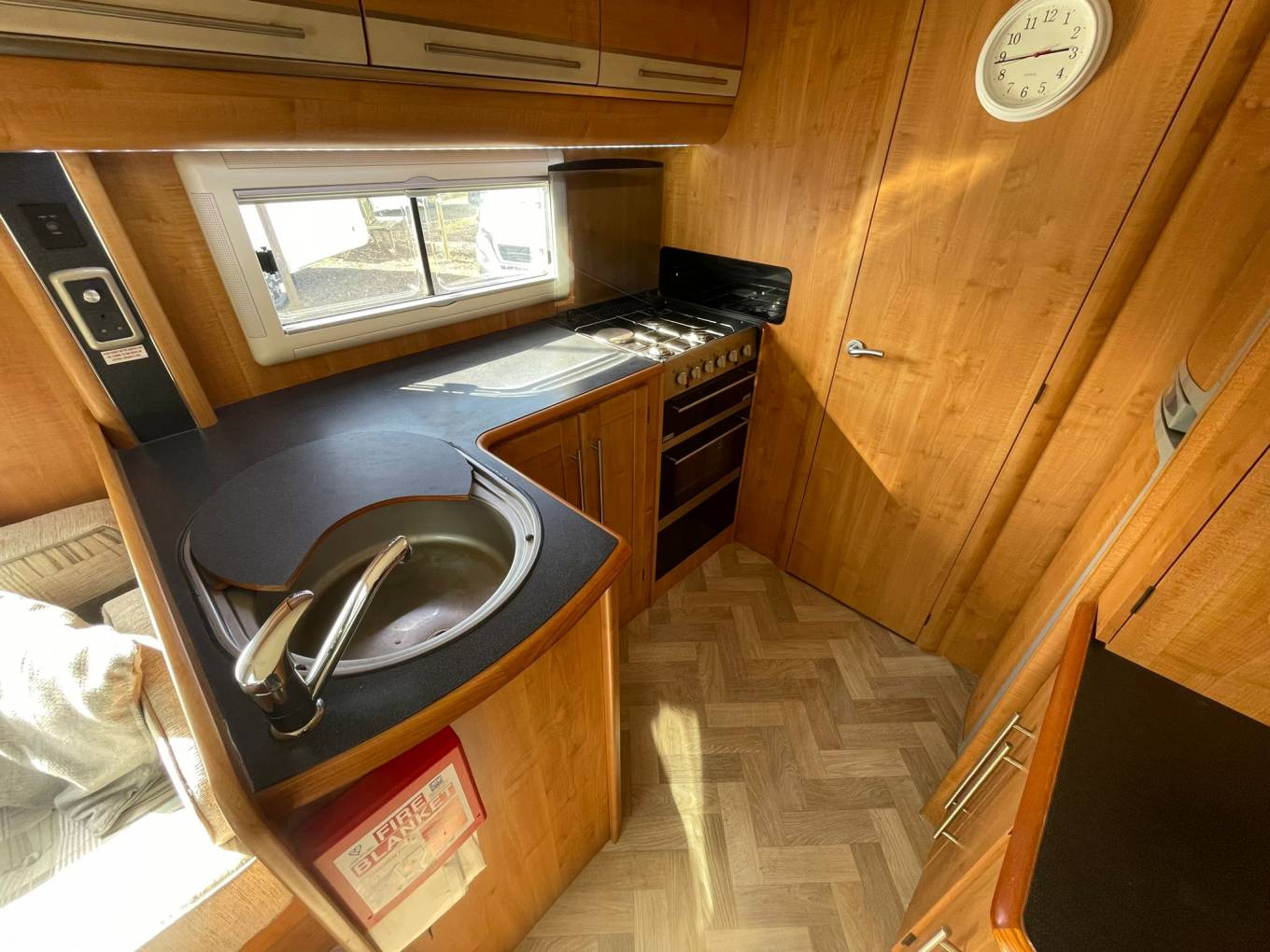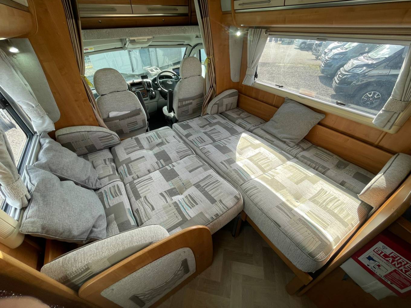 Motorhome Depot Retail near Farnsfield present this well looked after 2008 Autotrail Mohican SE. It is a 2 berth, 2 seatbelt Motorhome with front bench seating with two swivel captains seats. This lounge turns into a large double for bedtime. In the cab area it has air conditioning, Radio Bluetooth, cruise control and speed limiter. This Motorhome has a central L shaped kitchen with 3 gas rings and one electric hob, grill, oven, sink and large fridge and freezer. It also hosts a large cocktail cabinet.