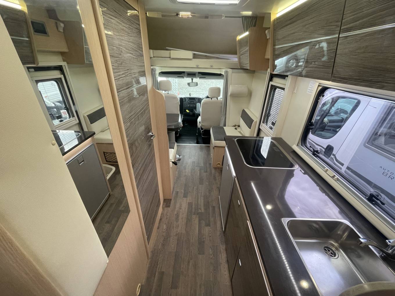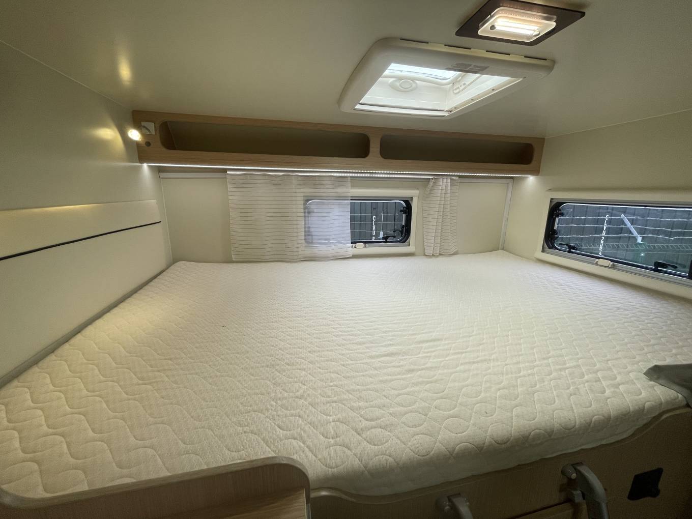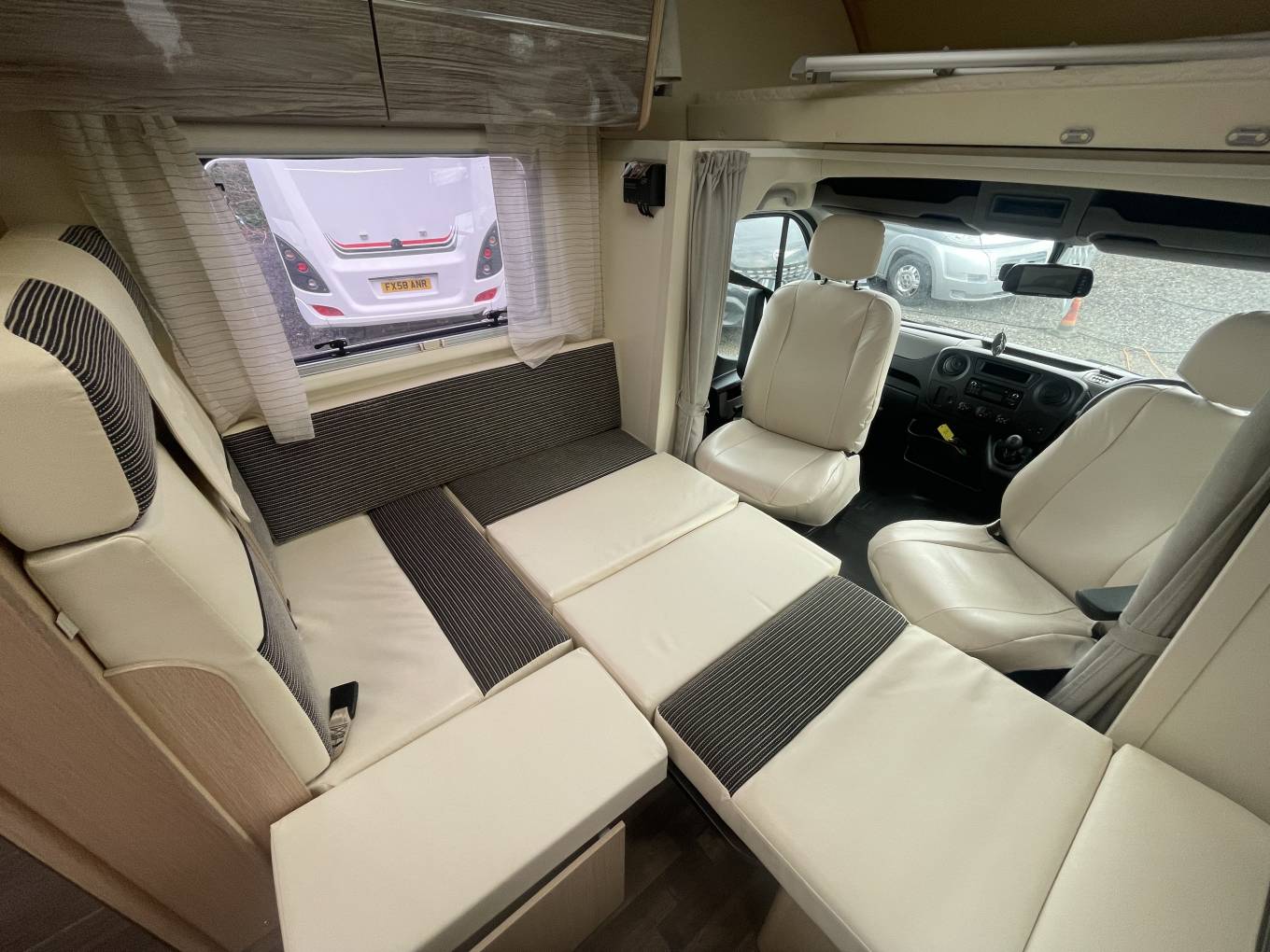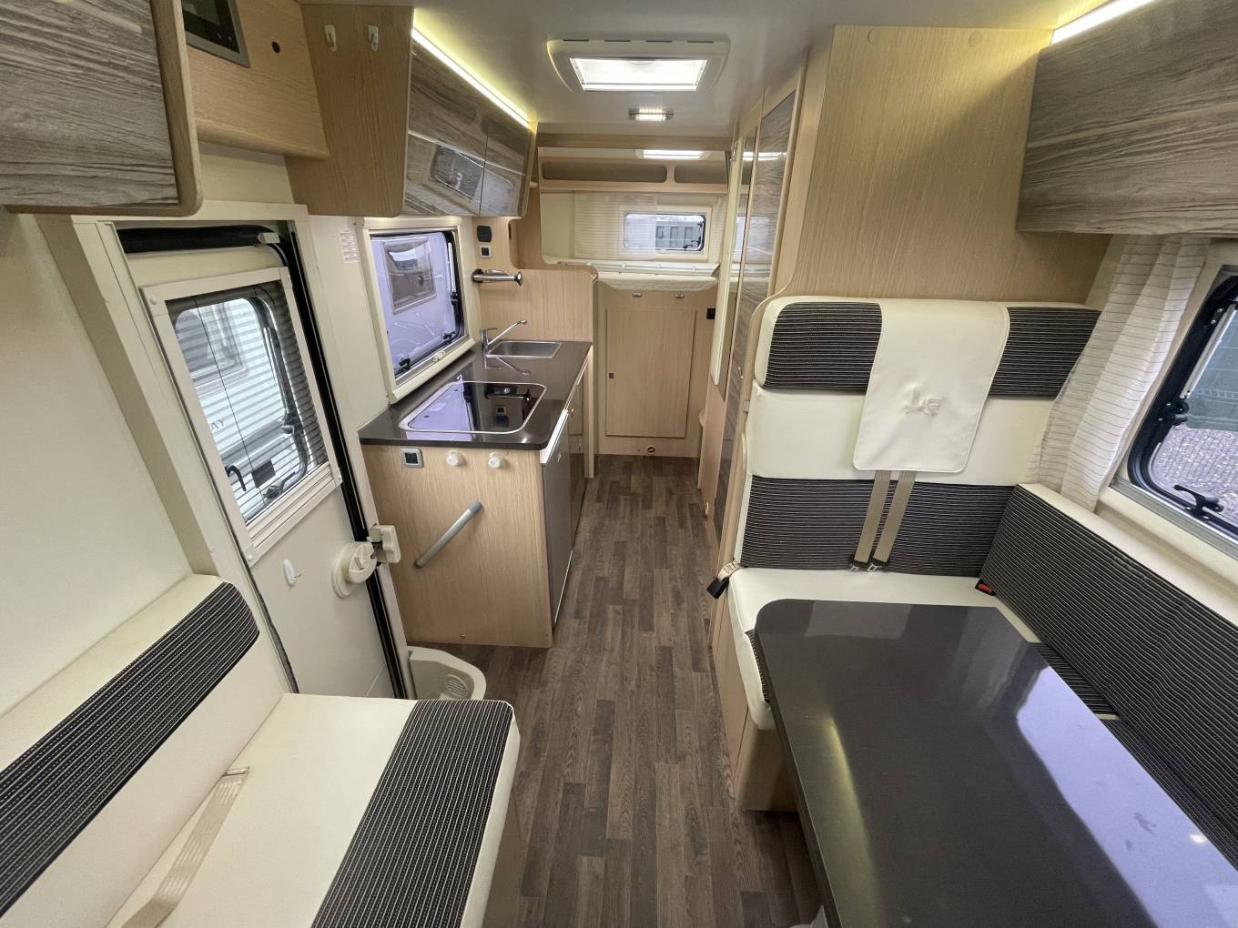 Natural light floods in from a large window on the nearside, A ceiling light provides further illumination as required. Heating is provided by a Truma unit, with warm air ducted around the vehicle.