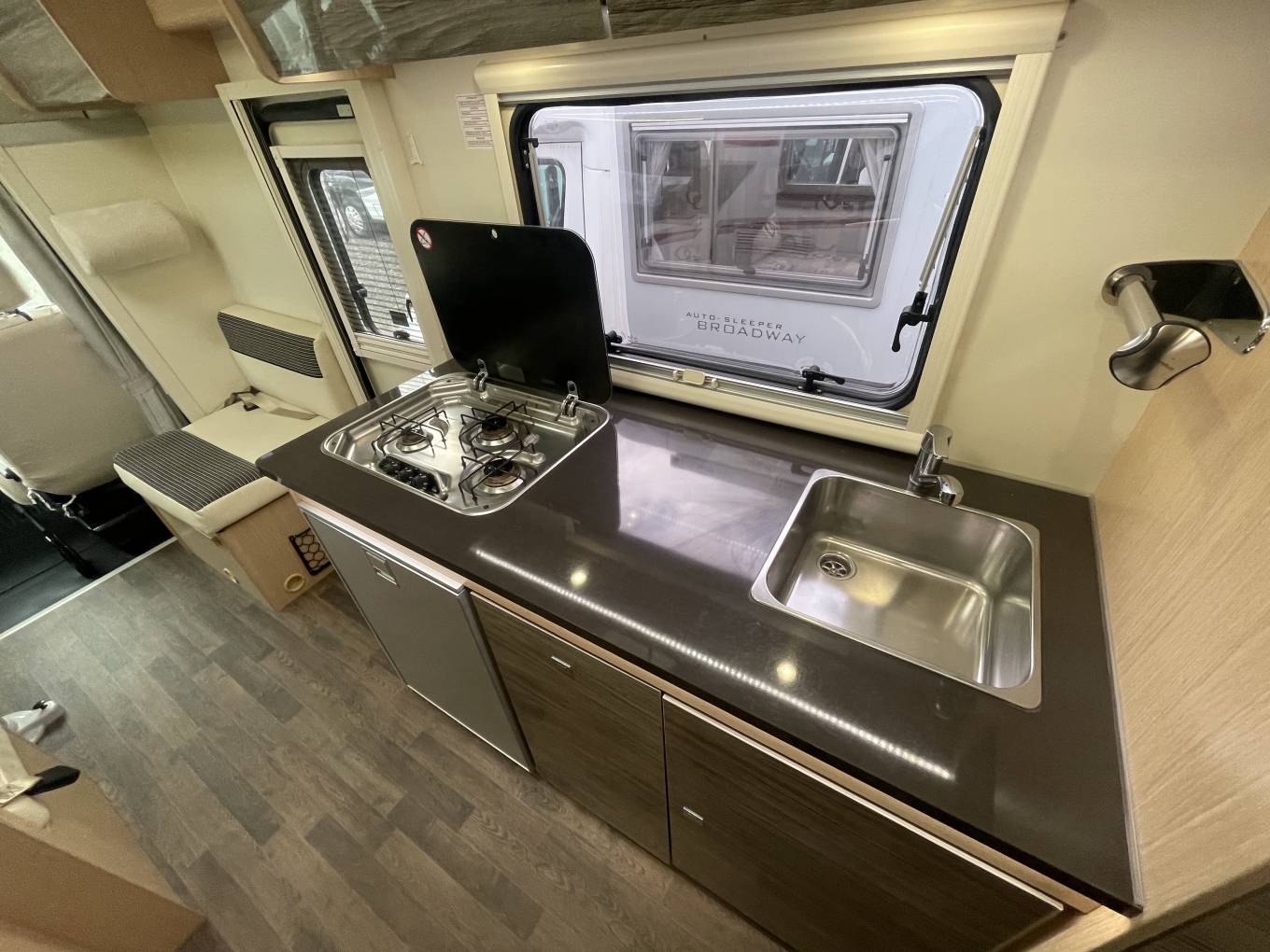 Living - You won’t go wanting for space in the front lounge. Six people will fit comfortably around the lounge table, with seats to choose from on both sides of the ’van in addition to the travel seats bench.