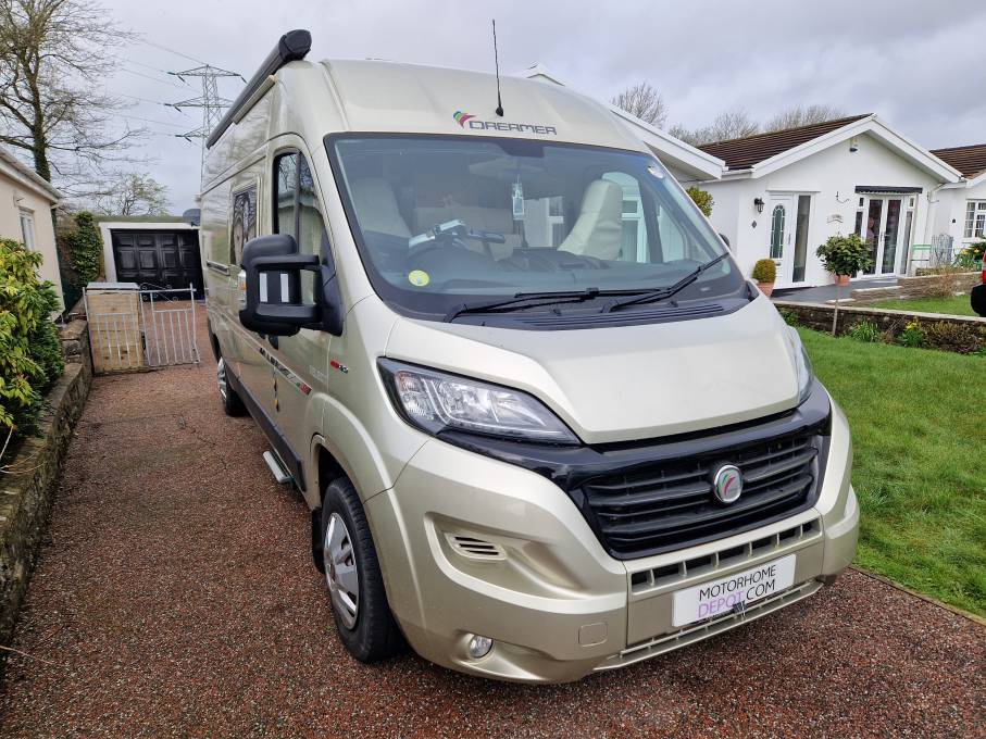 Motorhome Depot are pleased to present this extremely rare 2018 Dreamer D50 Select 3-berth,4-belt automatic Panelvan. Based on the Fiat Ducato, it is powered by the reliable 2.3 Multijet 130BHP engine and automatic gearbox. Having only covered 18000 miles, it has Full Service History with a cambelt change on 3.4.23 at 13150 miles and will come with a fresh MOT and service to give assurance to the new owner and it is in excellent condition inside and out. Being only 5.99m long, it has a GVW of 3500kg so it can be driven on a standard UK licence and is extremely easy to handle on those tricky campsites.