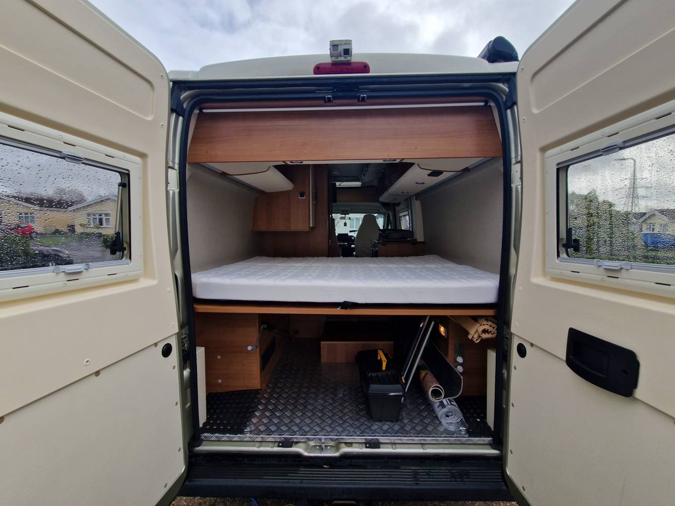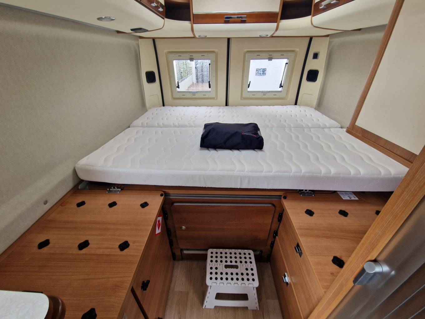 Dreamer is the van conversion brand for Rapido and the famous Rapido quality is evident throughout this great panelvan. The D50 Select is a very rare model in the UK and has a highly unusual and flexible layout. Where the D50 differs from more conventional fixed bed rivals is in the rear bedroom/storage area. Here, the standard format is twin beds with Froli springs and Bultex mattresses (2.00m long on the offside, 1.86m on the nearside), but actually these beds are joined along the majority of their length. Add an infill cushion at the foot and you get a really vast bed, up to 2.00m long and 1.92m wide.