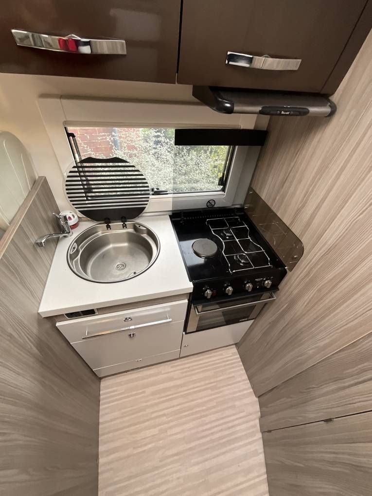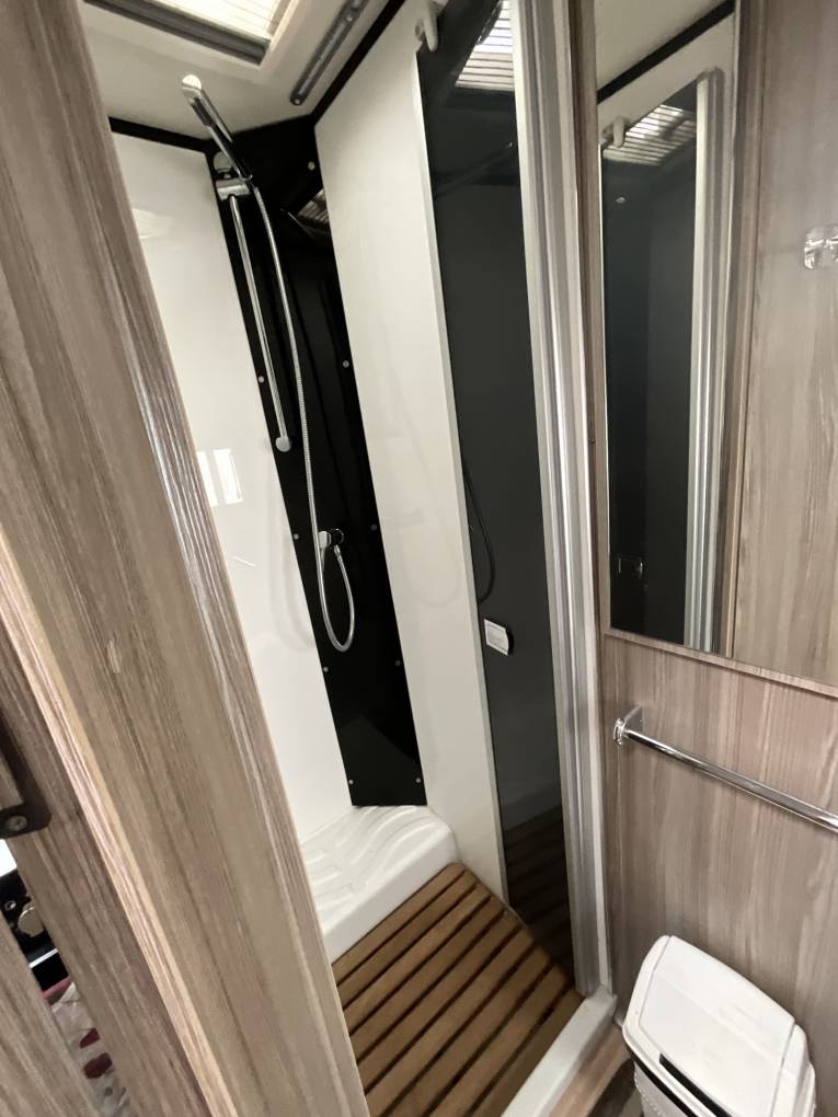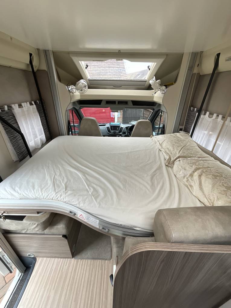 There are two sleeping areas, an electric drop down bed mid section of the motorhome which can be left made up whilst stowed away for the day. In addition the central dinette can be turned into a double bed or two single beds, creating various luxurious sleeping options.