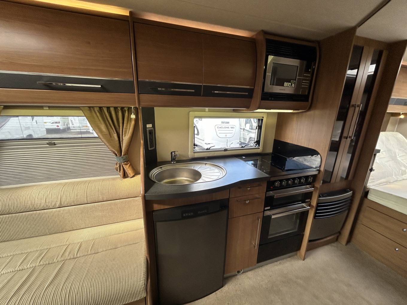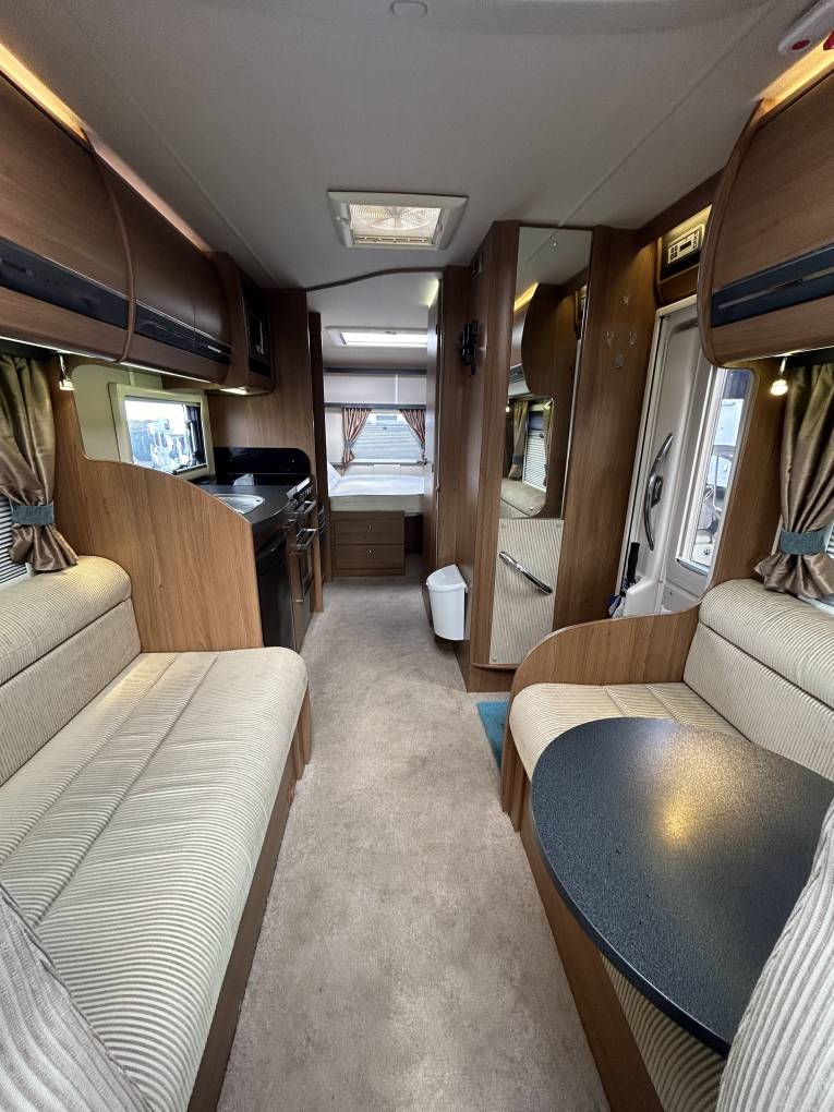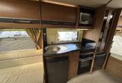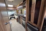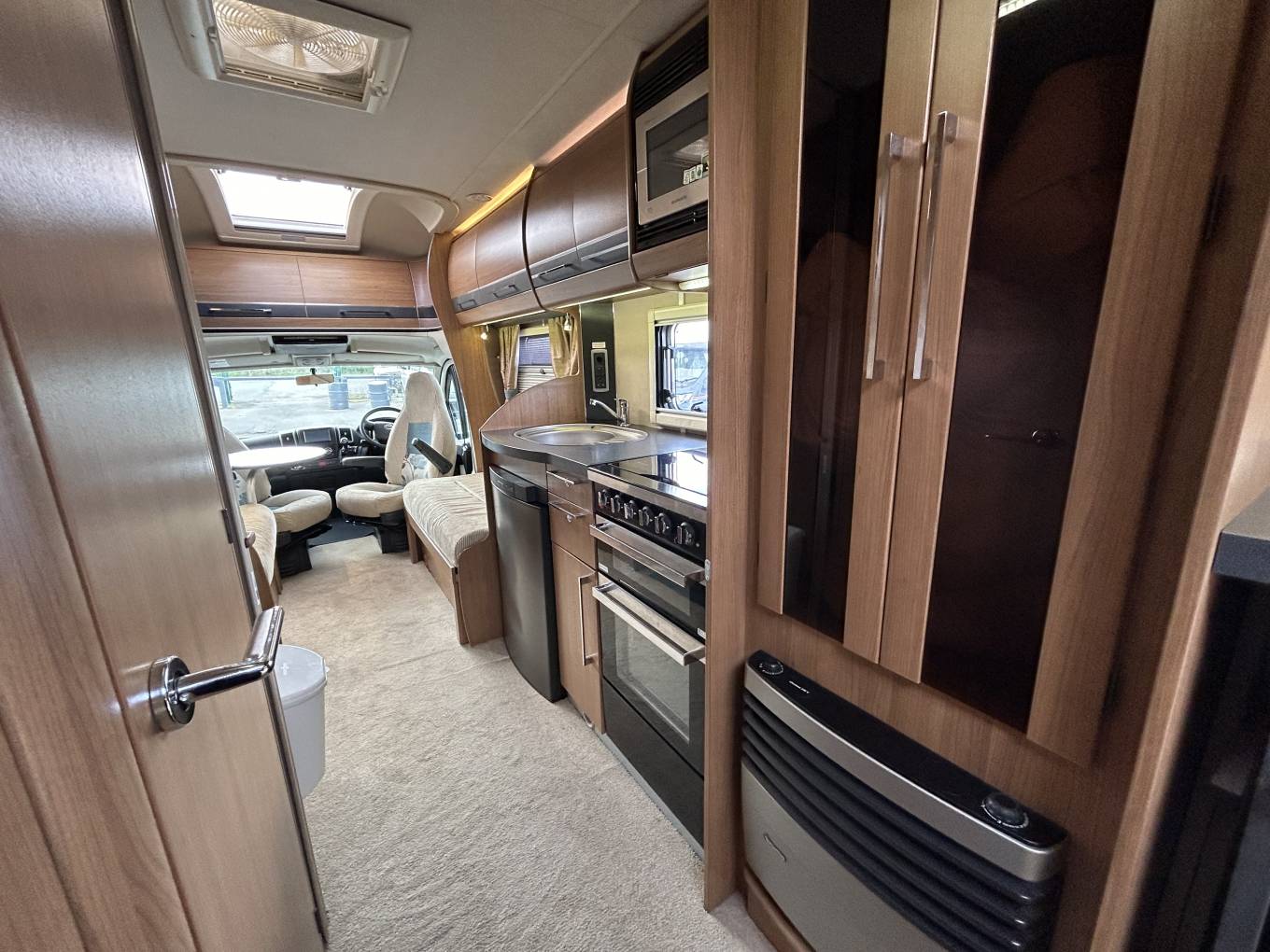 Both cab seats also turn to the central dinning area where you can enjoy family time whether it is having a meal or simply and entertaining your family with the built in TV. The adjustable and removal table gives you plenty of room to dine and entertain guests in the evening, maybe cook up a fine meal in the kitchen which has everything that you will need, with a full oven and grill, a built in microwave and a full 3 way fridge and freezer, and electric fan for those warmer evenings, this motorhome also comes with a truman heating system for those colder days. This motorhome has fully fitted carpets throughout and is in beautiful condition.