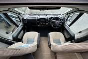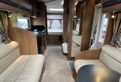 The dining area seating converts into your first double bed and the rear bedroom has a fixed transversal bed that tilts to a sitting position to cater for all your needs, there is a blind that can separate the bedroom area giving privacy if required, with loads of storage room below, there is also plenty of storage in the wall cupboards throughout the motorhome and a large wardrobe.