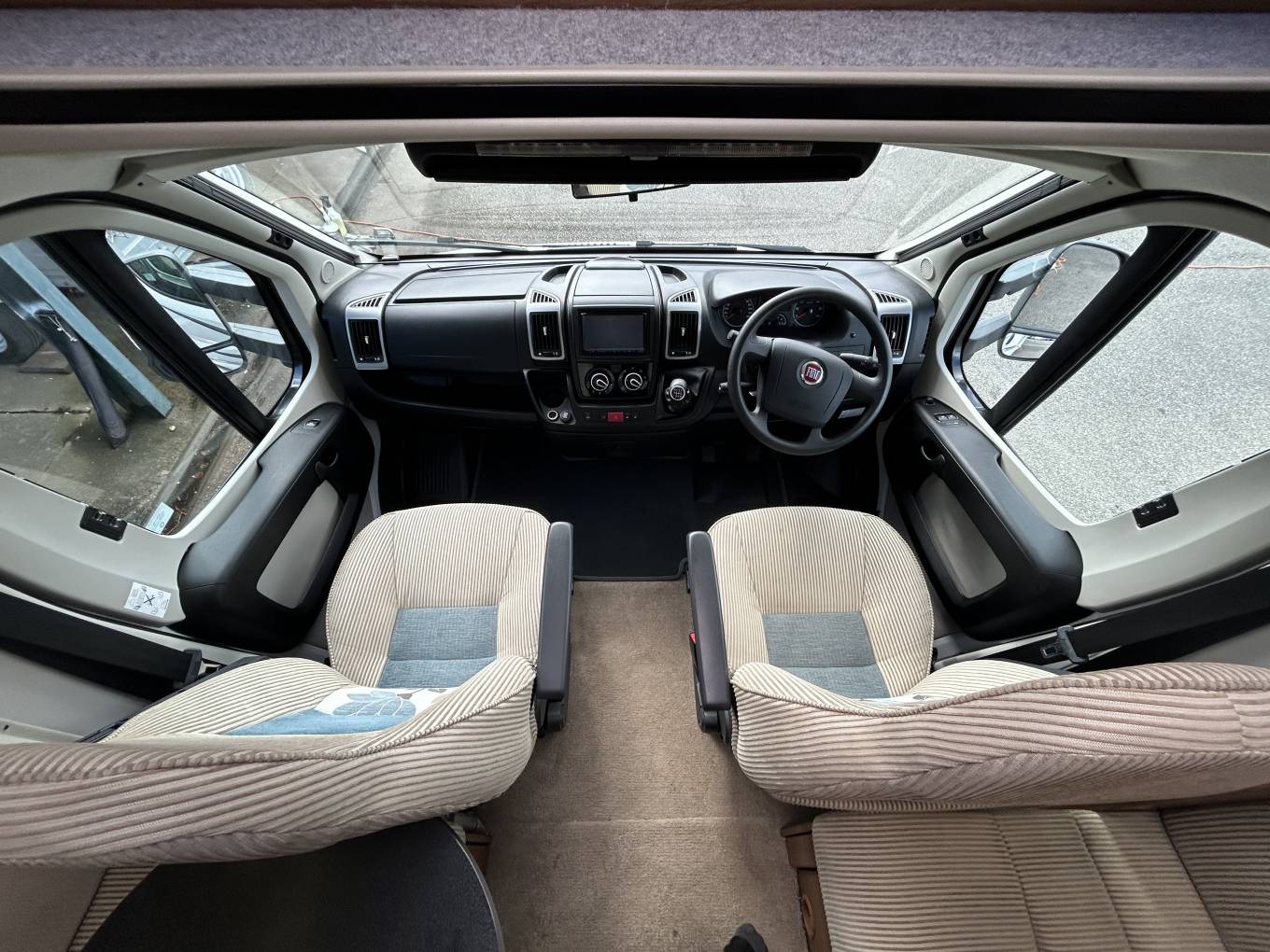 Here we have a Autotrail Tracker, 4 berth with 2 seatbelts, fixed transversal island bed on a 6 speed fiat 2287 engine, with 29564 miles on the clock. this layout is perfect for a two, to have the adventure of a lifetime. This motorhome comes with a solar panel to help you keep topped up with power whilst on your trip. It has electric windows and wing mirrors and reversing camera, cruise control, air con The cab area has built in blinds so its really easy and convenient and easy to stay private.