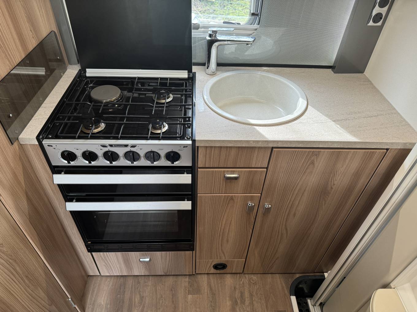 adjacent to the Dometic 4 way combination fridge freezer. Great detailing