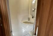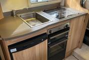 In the centre of the habitation area there is a fully fitted kitchen with a fridge, sink, four hobs, grill, oven and a microwave. Opposite this there is a washroom with a toilet, sink and a shower which has a partition which can be slid across to keep it separate from the rest of the toilet area.