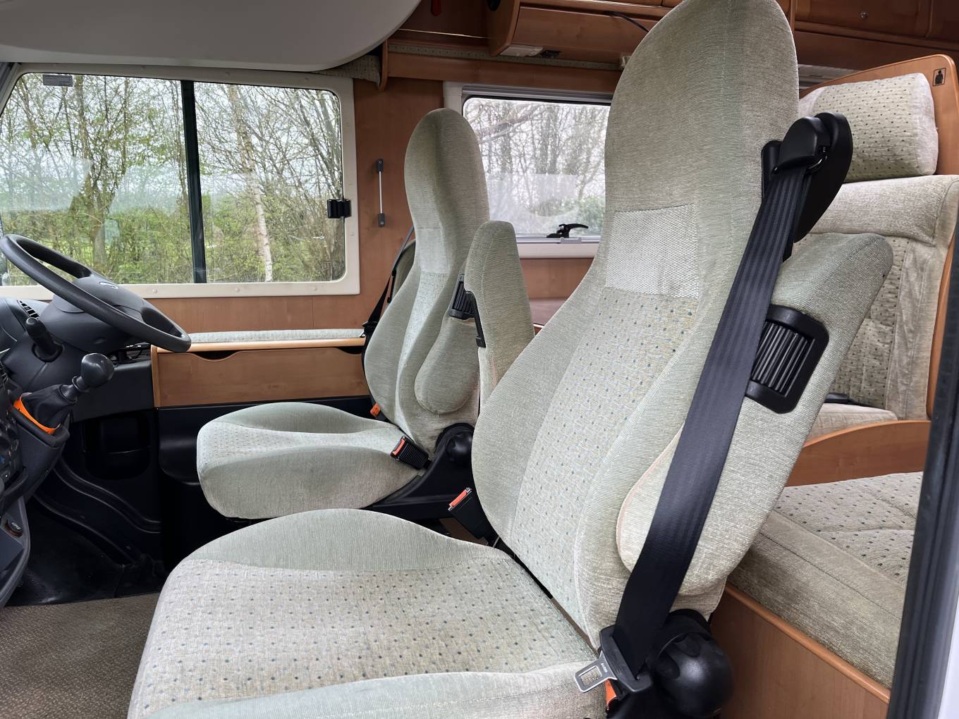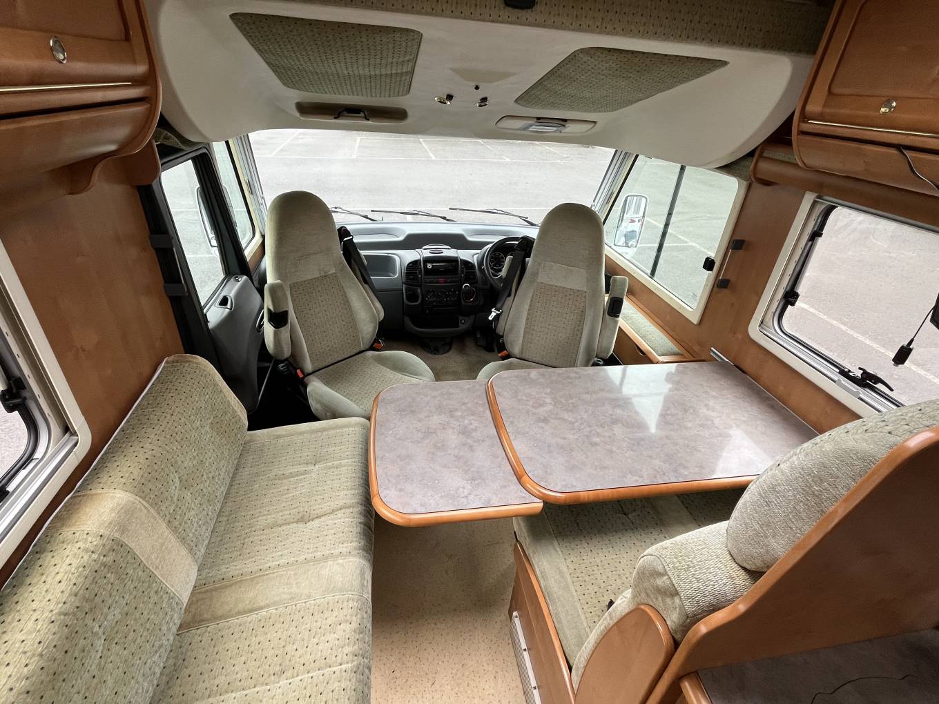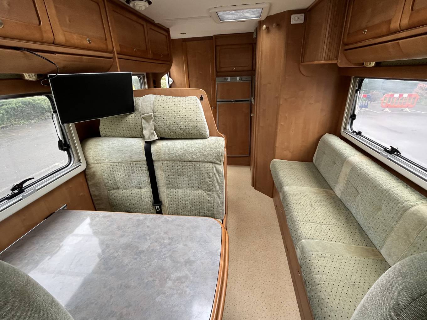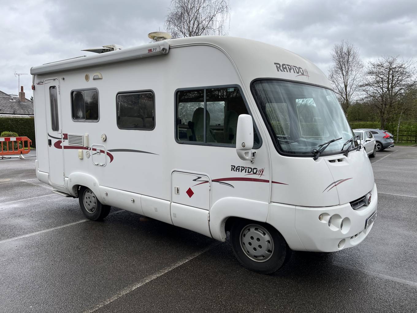 Rapido 924F, Compact 4 Berth, A Class Motorhome, built on the Fiat Ducato chassis with 2.8 engine. This motorhome has been well looked after and is ingood condition inside and out. The layout comprises a bathroom to the rear, with separate shower compartment and next to this is a full sized wardrobe. Forward from this is a well equipped kitchen and in the centre is the lounge area with a large bench seat and a dinette. At the front there are 2 captains seats and a large pull down bed. It comes with 4 Seat Belts, Blown Air Heating, Gas Low System, TV, Canopy Awning, Safari Room, Rear Ladder, Electric Step, Bike Rack, Solar Panel, Inverter and mains hook up. Available for viewing by appointment in Parbold, call for more photos, videos and information.