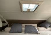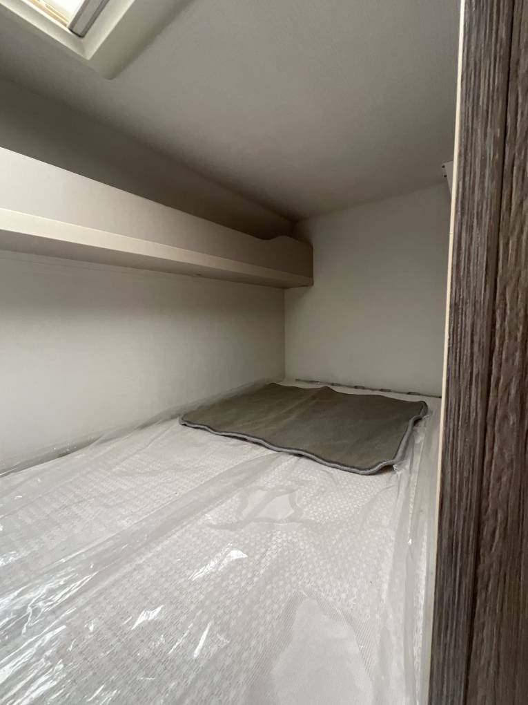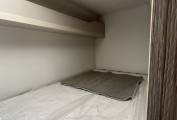 Next to this is the habitation door. Entering this door, on the left there are two bunk beds. The bottom one can be folded up to form a large storage space at the rear