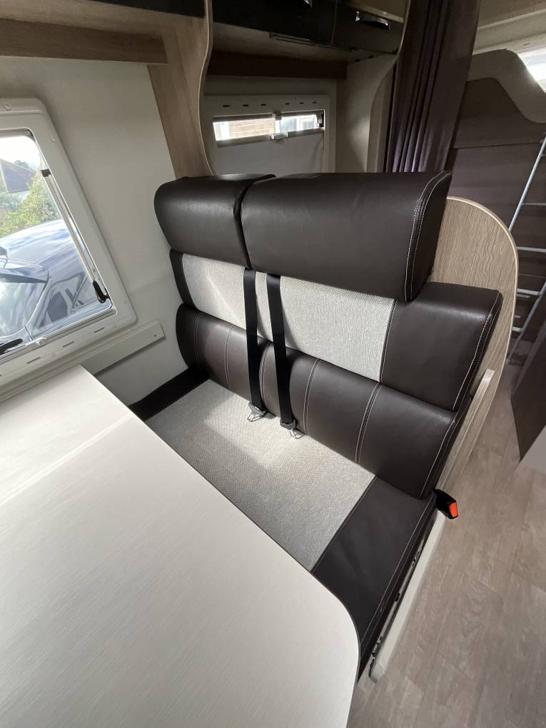 Here we have a 2018 Chausson Flash C656 on a Fiat Ducato chassis, RHD with manual 2300 multi-jet diesel engine. 7 seat belts, 7 berth, 3500KG which means this can be driven on a standard drivers licence and therefore ideal for a young family. The seat belts consists of 4 x 3 point harness belts and 3 rear facing lap belts.