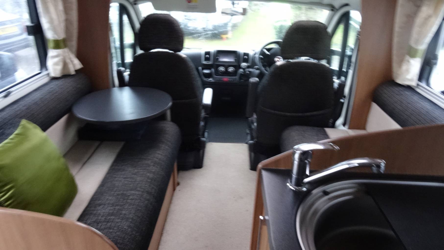 double bed if required. The front seats can be swivelled to make a large dining area along with a folding table. A TV/DVD is set