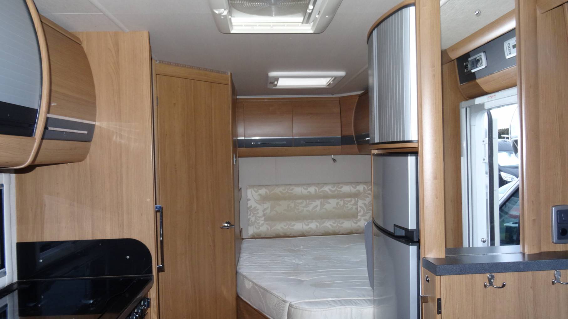 the rear nearside corner is the fixed double bed with storage accessible from