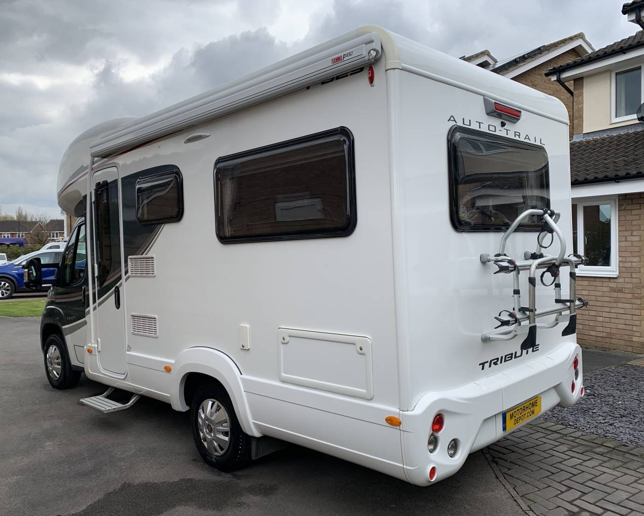 Call with any questions 01423 609985. This 2018, 4 berth, coachbuilt, AutoTrail Tribute T625 , is a well presented motorhome, that comes with new service and timing belt, up to date habitation, MOT to September 2024 and 1 owner from new. It comprises a rear U shape lounge, which can be used as a double or 2 singles. The washroom has a shower within its own cubicle and opposite, the kitchen is well equipped with cooker, microwave, fridge freezer and nice amount of worktop space. The overcab bed, neatly folds away to create extra headroom above the cab, that has 2 captains seats, 6 speed gearbox, cruise control plus Bluetooth and Remis blinds. It has travelled 15,890 miles, with GVW of 3500kg, so anyone can drive it and a payload of approx. 580kg. Additional features include solar panel, bike rack, rear view camera, wind out canopy and TV. It should be seen at the earliest opportunity in York, North Yorkshire. Please call 01423 609985 and quote reference 237366