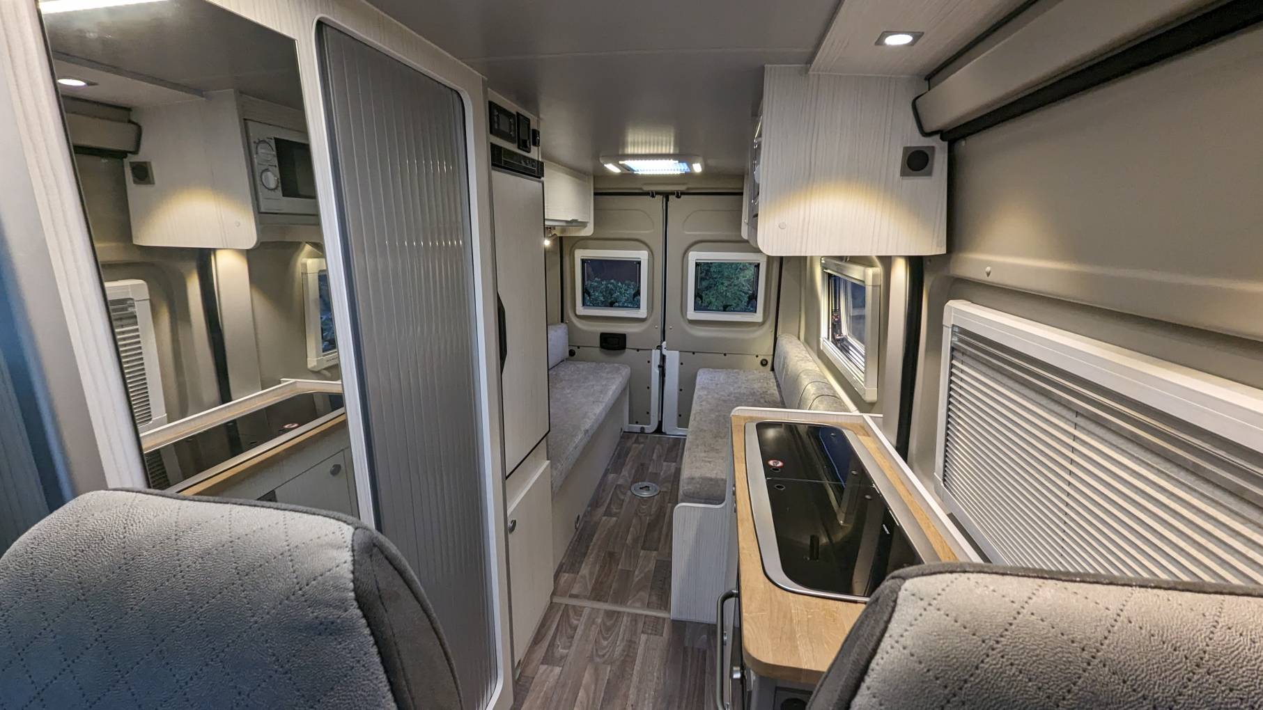 240V hookups and sockets turn the van into a mobile office or playroom, ensuring productivity on the go if desired. And with twin leisure batteries and a solar panel, nights are illuminated with possibility.
