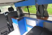 This van is a VW TDI BMT Transporter T28 converted by Coast2Coast Campers, with the ability to carry 6 passengers (incl. the driver). The SWB makes it perfect for parking and exploring narrow streets, or getting down that lane to the beach.