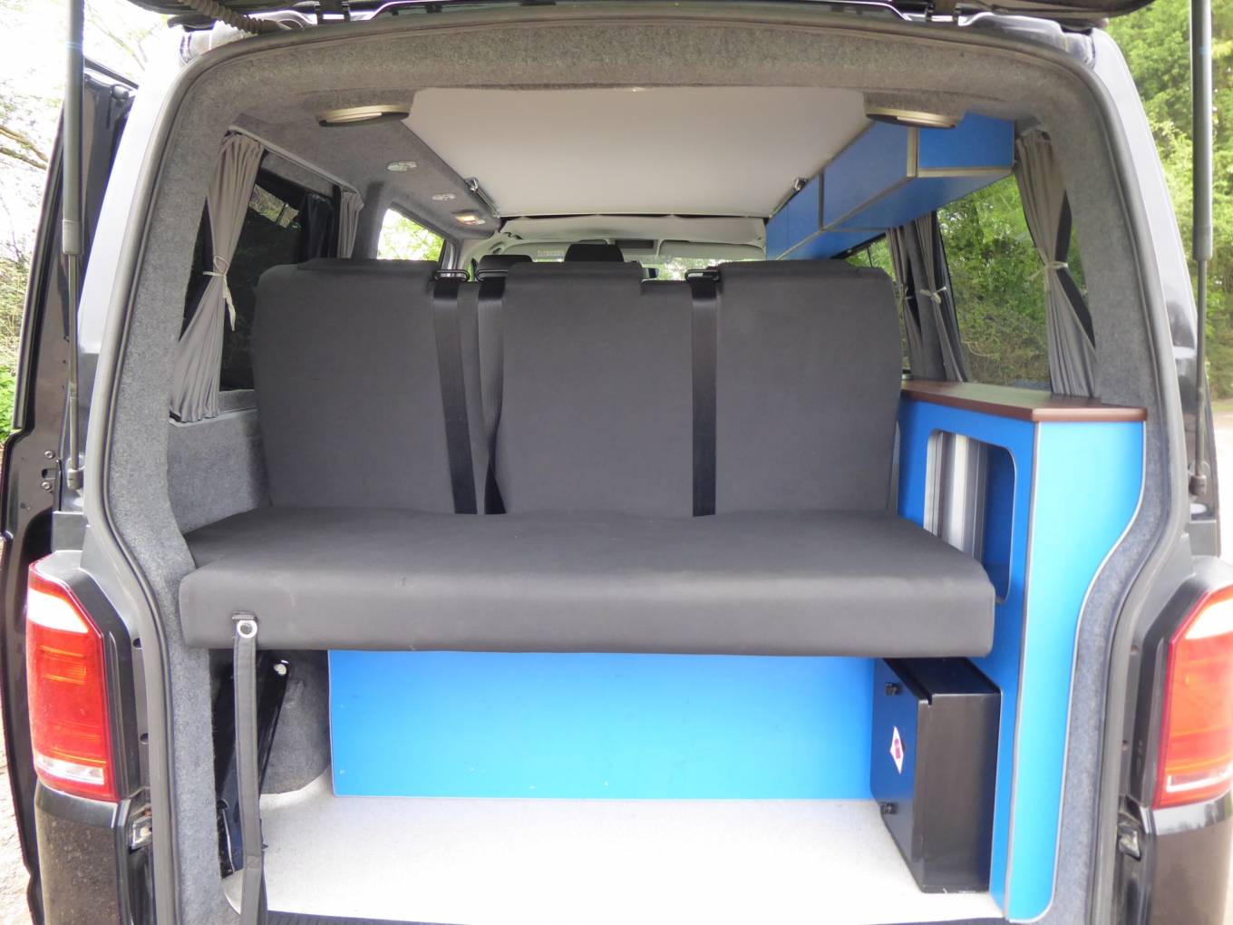 For comfort at bed time the rear seats convert to a 130cm wide rock’n’roll bed, with two additional berths available in the tented pop top.