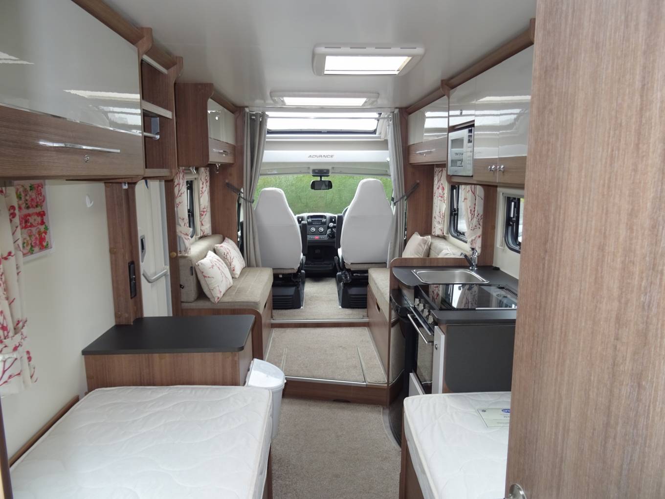 Motorhome Depot are proud to offer for sale this spacious low profile Bailey Advance 76-2 On a Peugeot chassis with a 2.0l diesel engine and a 6 speed manual transmission. This is a 4 berth, 2 seat belt motorhome. Upfront there is cab aircon, armrests, electric windows, cruise control, blinds, radio, reverse camera screen, and 2 swivel seats.