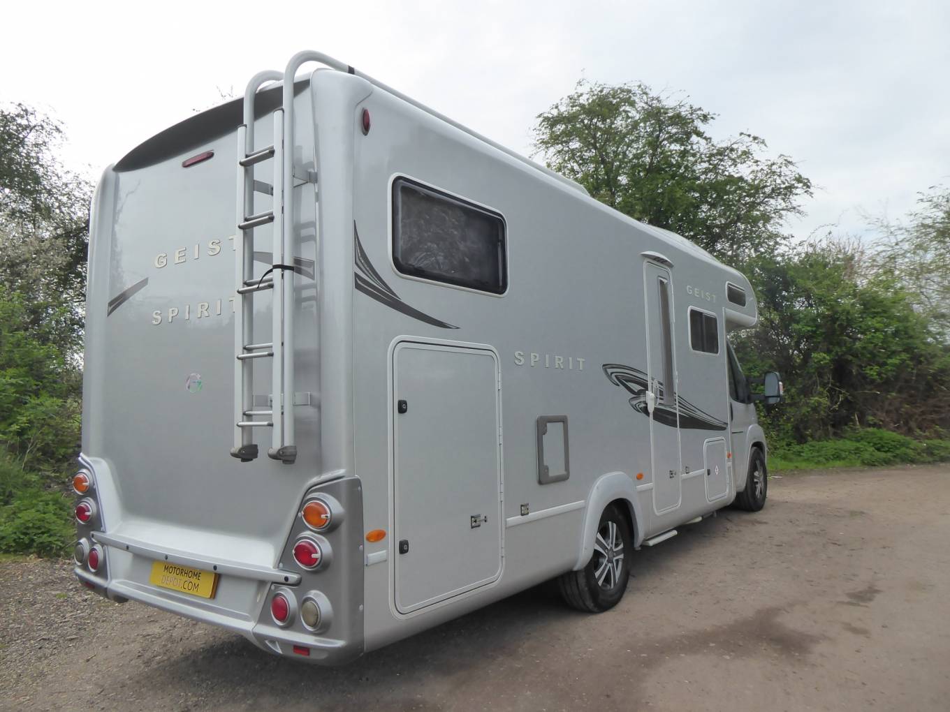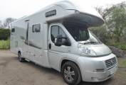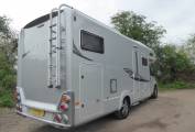 At the rear of this motorhome is a raised transverse double bed over an externally accessed garage.