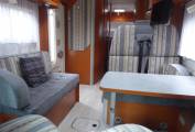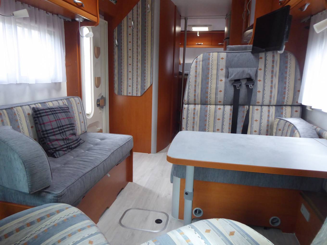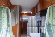 Above the cab, there is a transverse double berth. Right behind the cab, there is a nearside half dinette with an opposing side sofa. This can be converted into a small double bed.