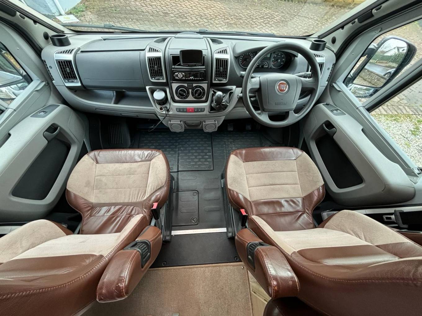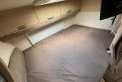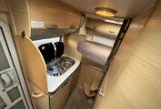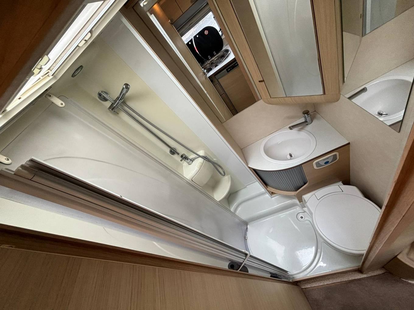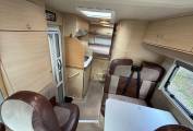 Layout - Starting at the back, we have a large double bed that sits above the large garage space that you access from the outside and will enable you to ensure nothing is left behind. In front of the bed to the left we have the kitchen and this is made up of a 3 gas burner hob, dometic fridge with freezer space and a sink with wash basin. To the right is the washroom that has been well maintained and contains a toilet cassette, vanity mirrors, sink and shower with circular enclosure. Towards the front of the Motorhome, we have the dinette area with 2 further seatbelts and an extendable table, this is a great entertaining area especially when you take advantage of the front swivel seats and use can be made of the additional single seat that is by the habitation door. This area does make up into an additional bed, but It is worth pointing out this would only be ideal for one person. Throughout there is plenty of locker space at head height.