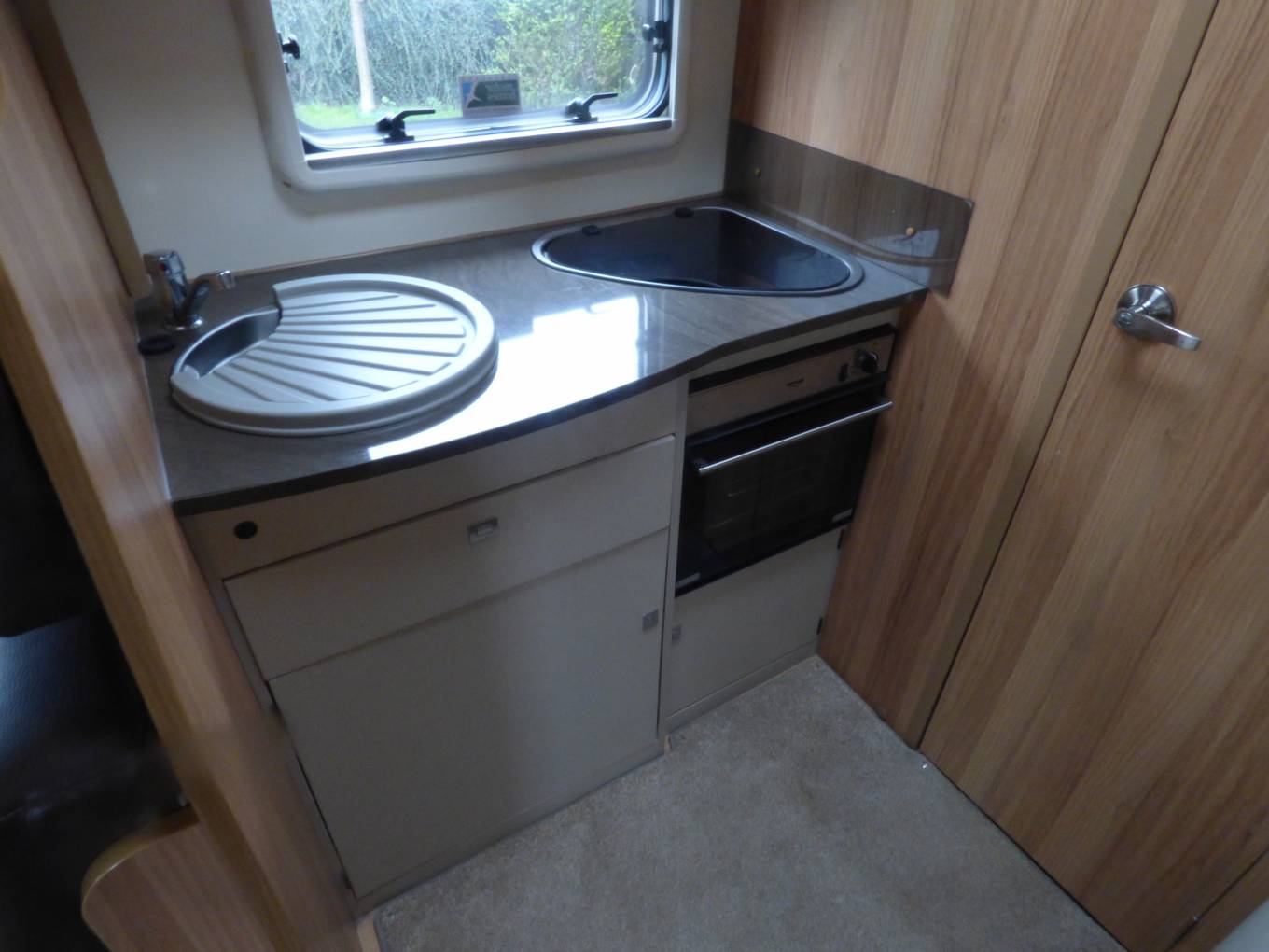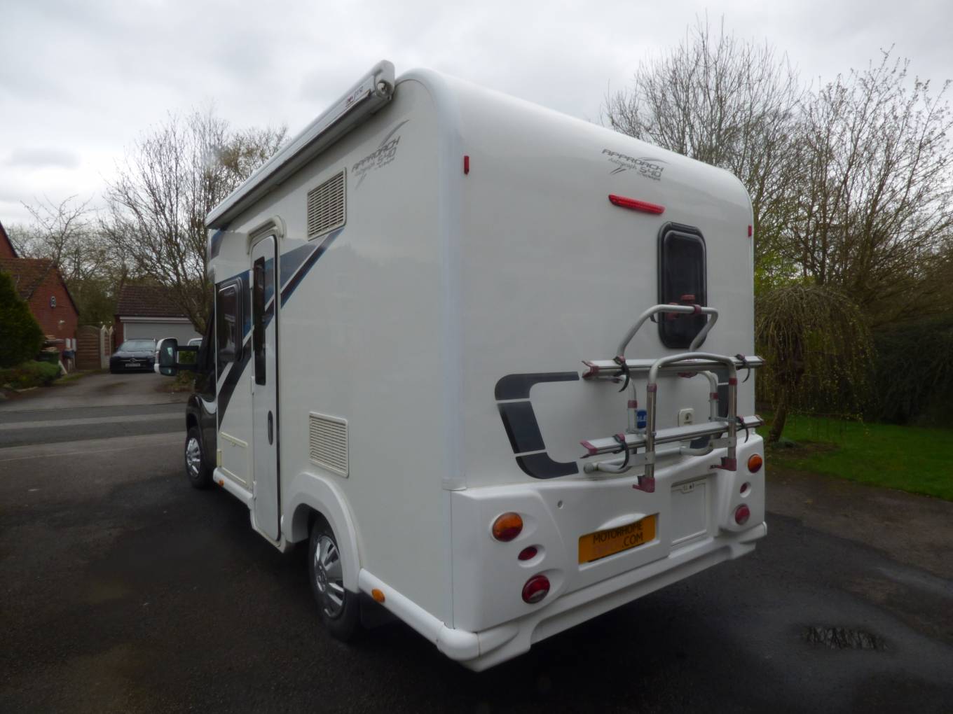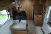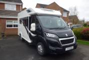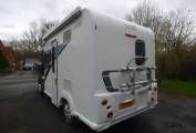 With a Peugeot 2.2 130bhp engine with manual gearbox, the vehicle has cab aircon, DAB radio, cruise control and electric windows and mirrors( a Garmin motorhome Satnav is available by separate negotiation), levelling chocks, thermal windscreen cover, Remis blinds over windscreen and side windows, large wind out canopy (Vango inflatable drive away awning available by separate negotiation), bike rack and comes in at 3500kg so available to drive by anyone with a standard UK driving licence.