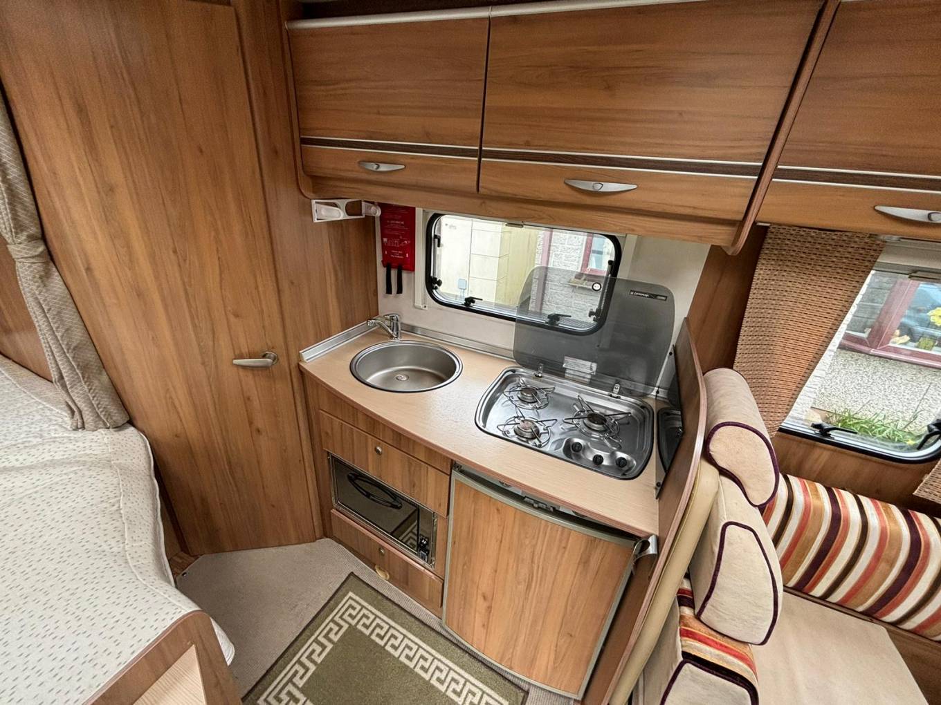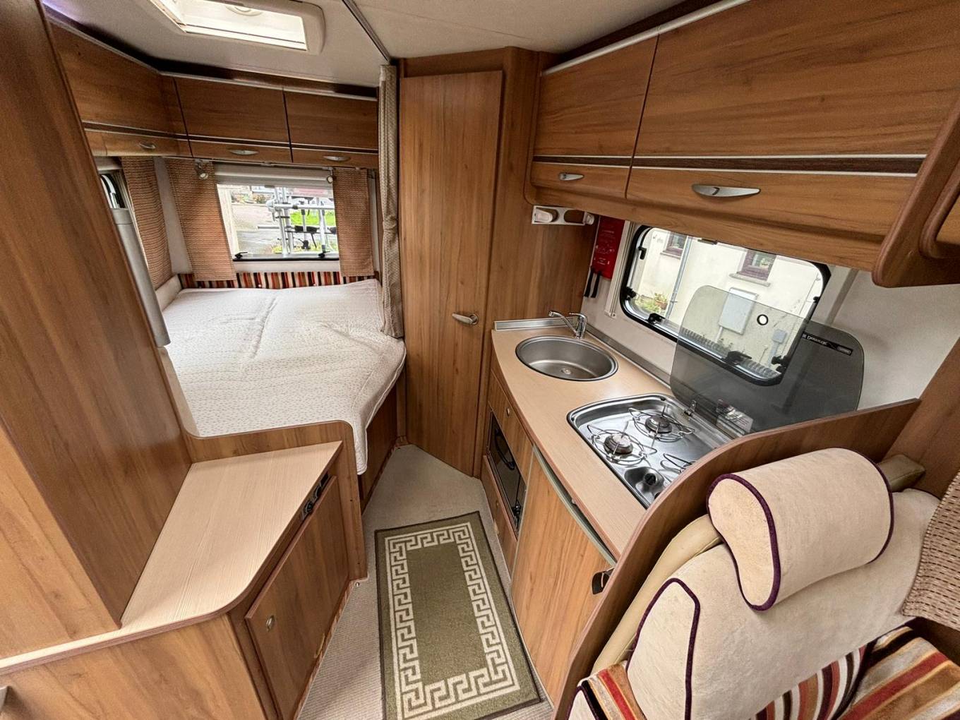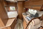 Layout - Starting at the rear, this model features the very sought after large fixed french bed. Underneath the bed you have storage space by lifting the bed and this can also be accessed from outside the vehicle. To the right of the bed, we find the large washroom this is well equipped and comes with shower, Thetford toilet and washbasin. Mid habitation is the well-equipped kitchen this is made up of a 3 gas hobs, sink & drainer, 3-way fridge with freezer space and an oven and grill combi. Finally towards the front of the Burstner we have the spacious dinette area made from one forward facing bench and a side facing bench between a fixed retractable table. One of the benches houses an additional 3-point seatbelt and the whole area can be converted into an extra sleeping space if needed. Both front seats swivel into the habitation area. Simply put this motorhome really has been well looked after and is a credit to its owners.