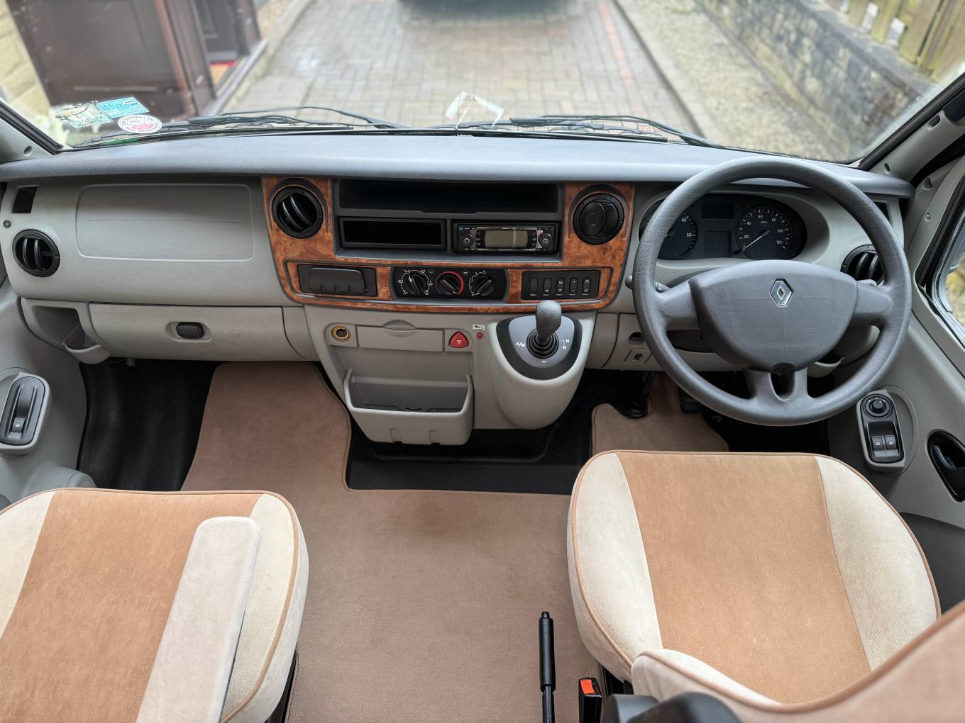 This is a generous 2 berth with 4 travelling seat belts, built on a 2.5 Renault master with a sought after Automatic transmission and a maximum gross weight 3850kgs.