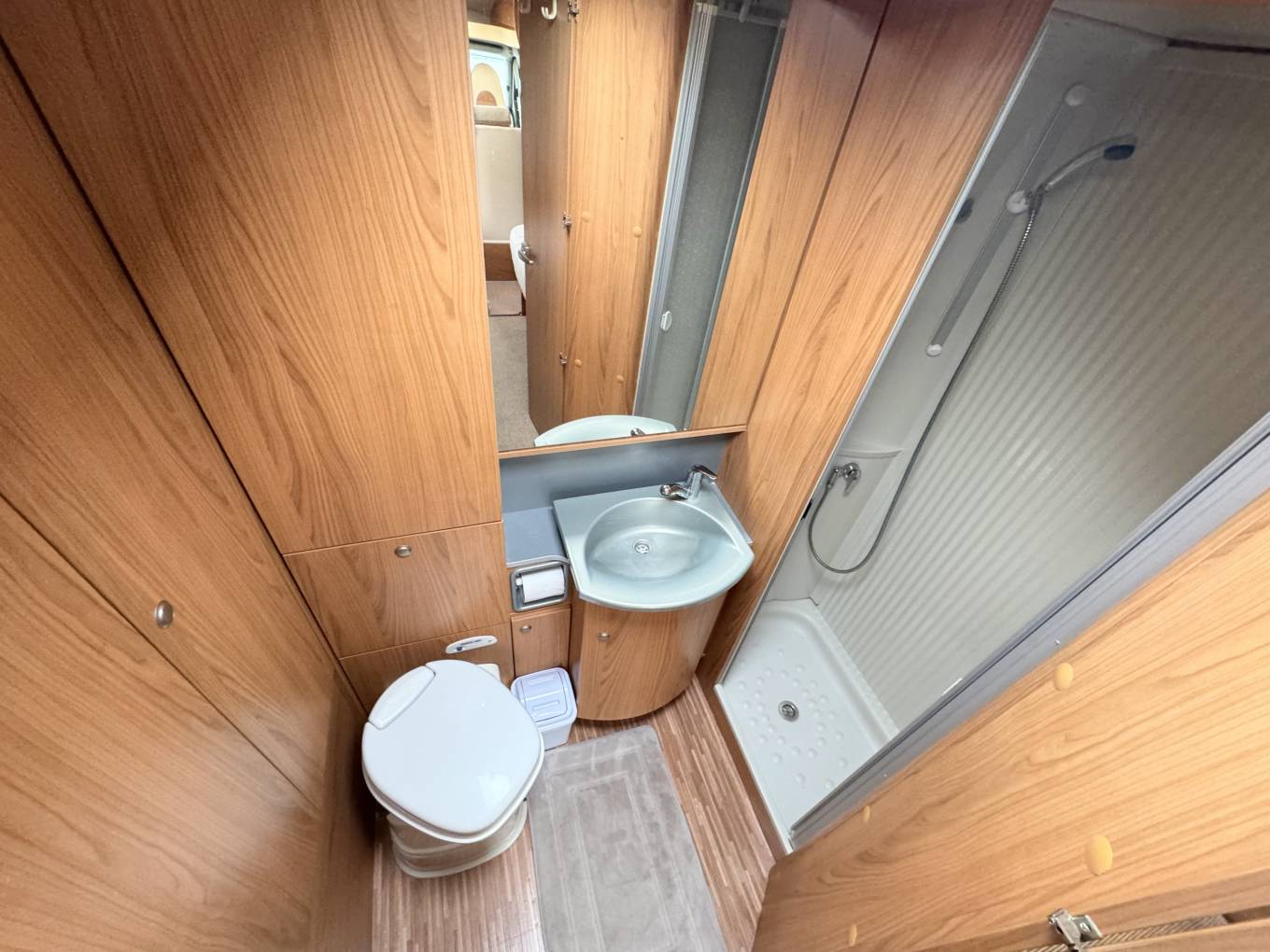 At the rear is a lovely spacious washroom which houses large wardrobe, cassette toilet, vanity sink and separate shower.
