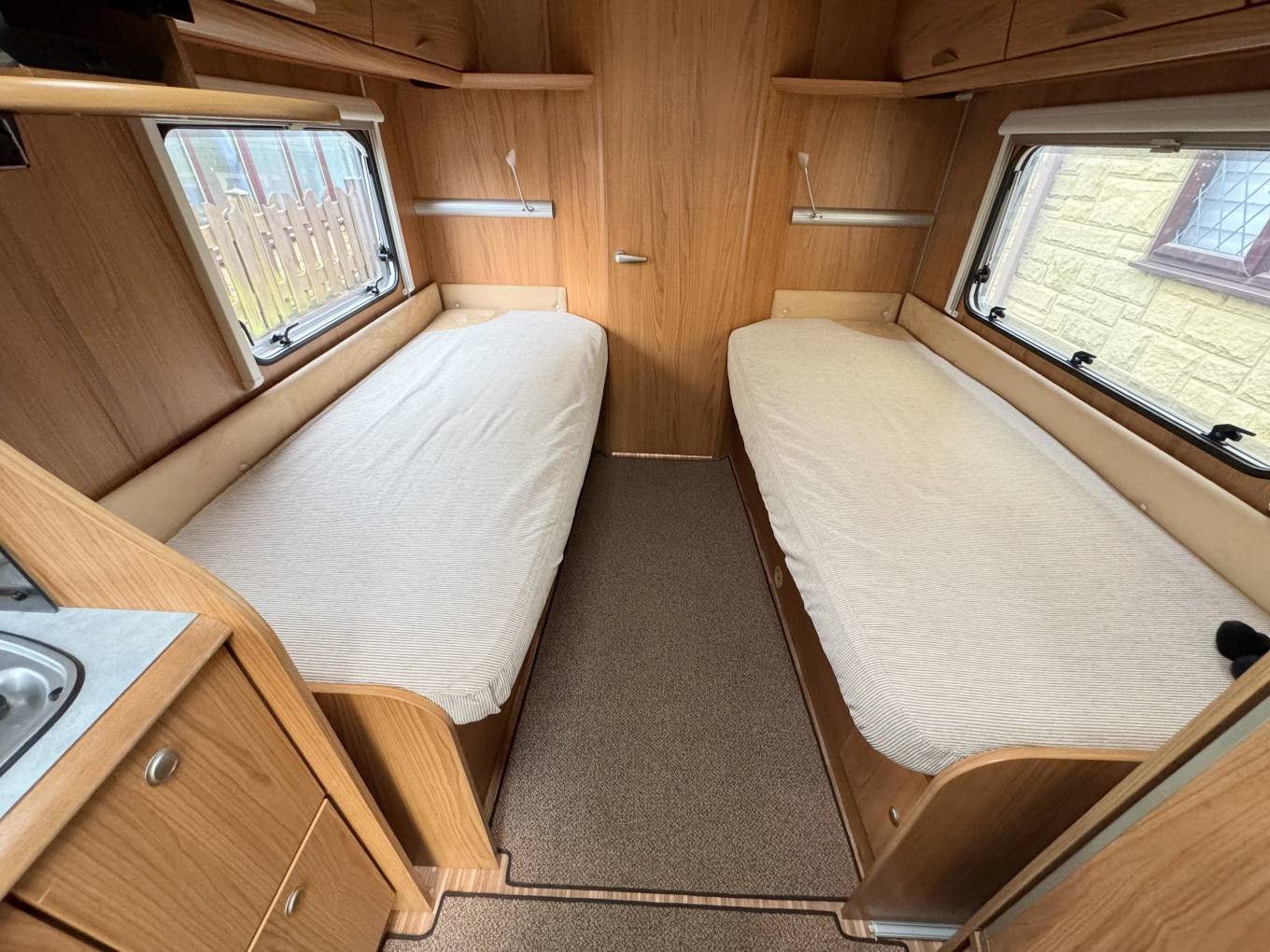 Step out of the washroom straight into the bedroom which features the very popular “fixed single” beds layout with plenty of storage below. There is also a privacy blind which can be used to block off the rest of living area at night.