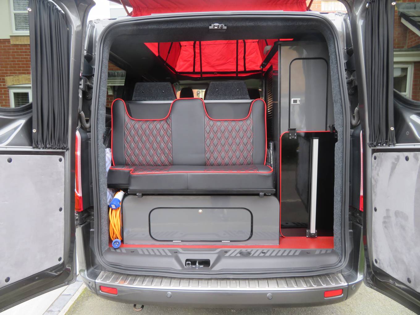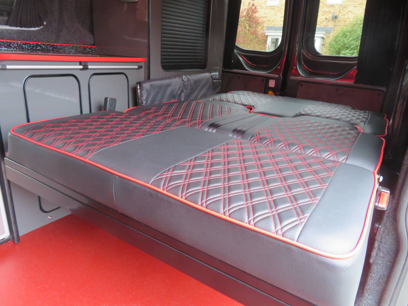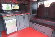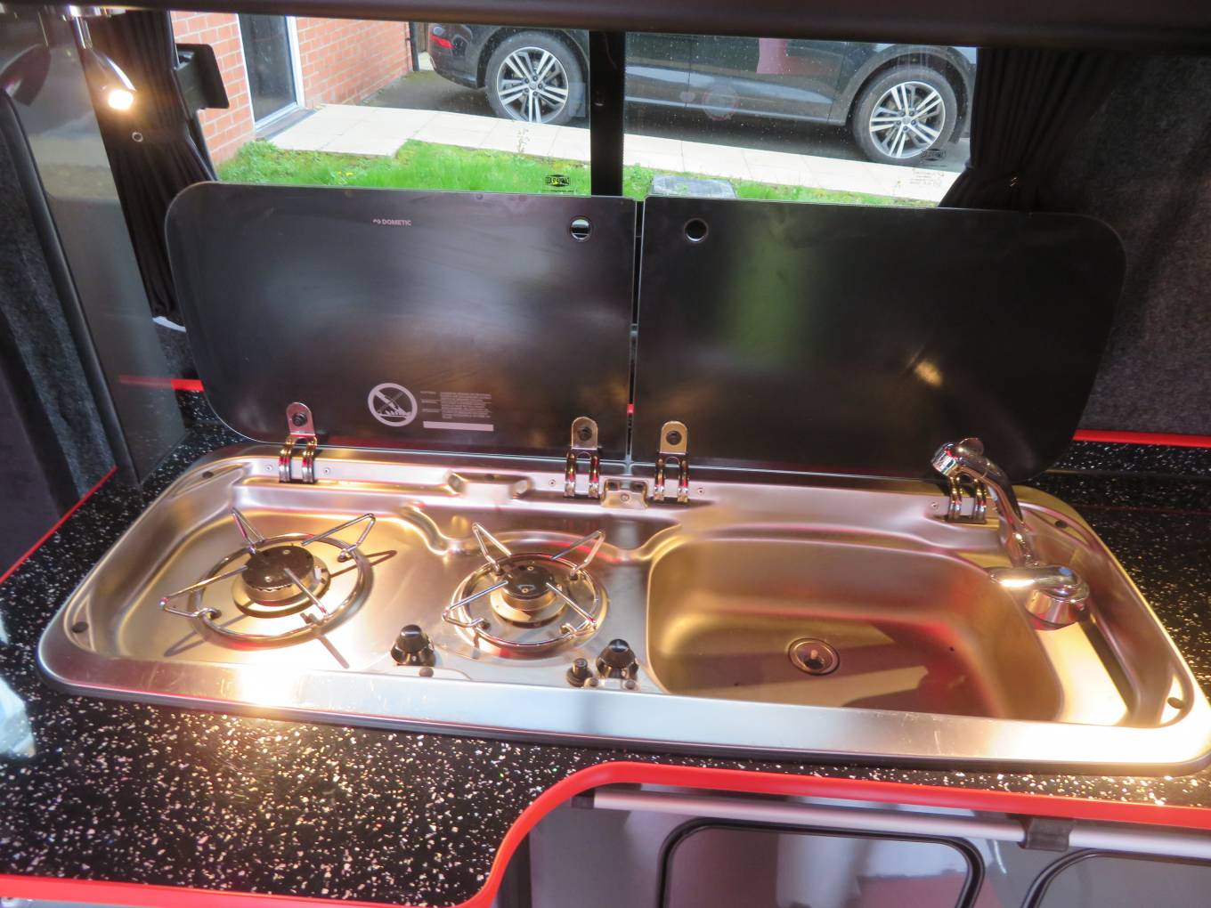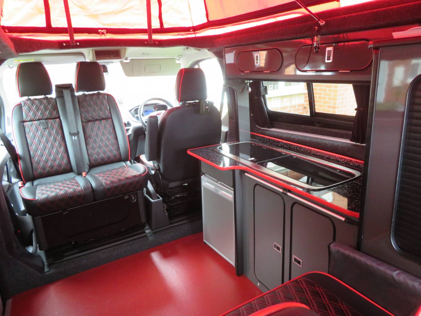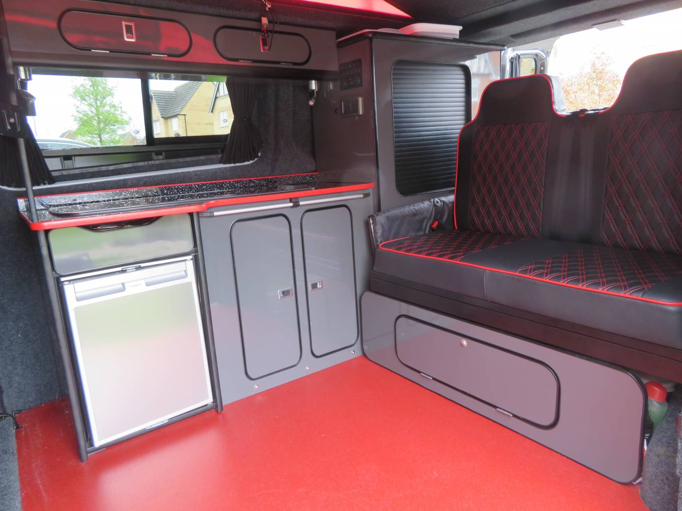 The conversions itself was converted my Spinney Motorhomes and comes with a pop up roof with Bed, Rock and roll bed with two seat belts amd underseat storage, Fitted units inc Hob and sink, Attractive Red and Black finish,front twin Swivel seat.