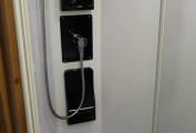 side and can be wound up to allow the carrying of bikes/a scooter below. There is a TV facing the bed on the screen