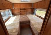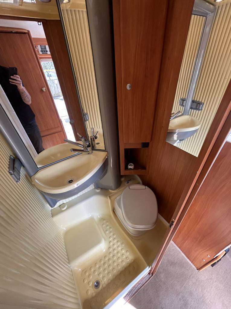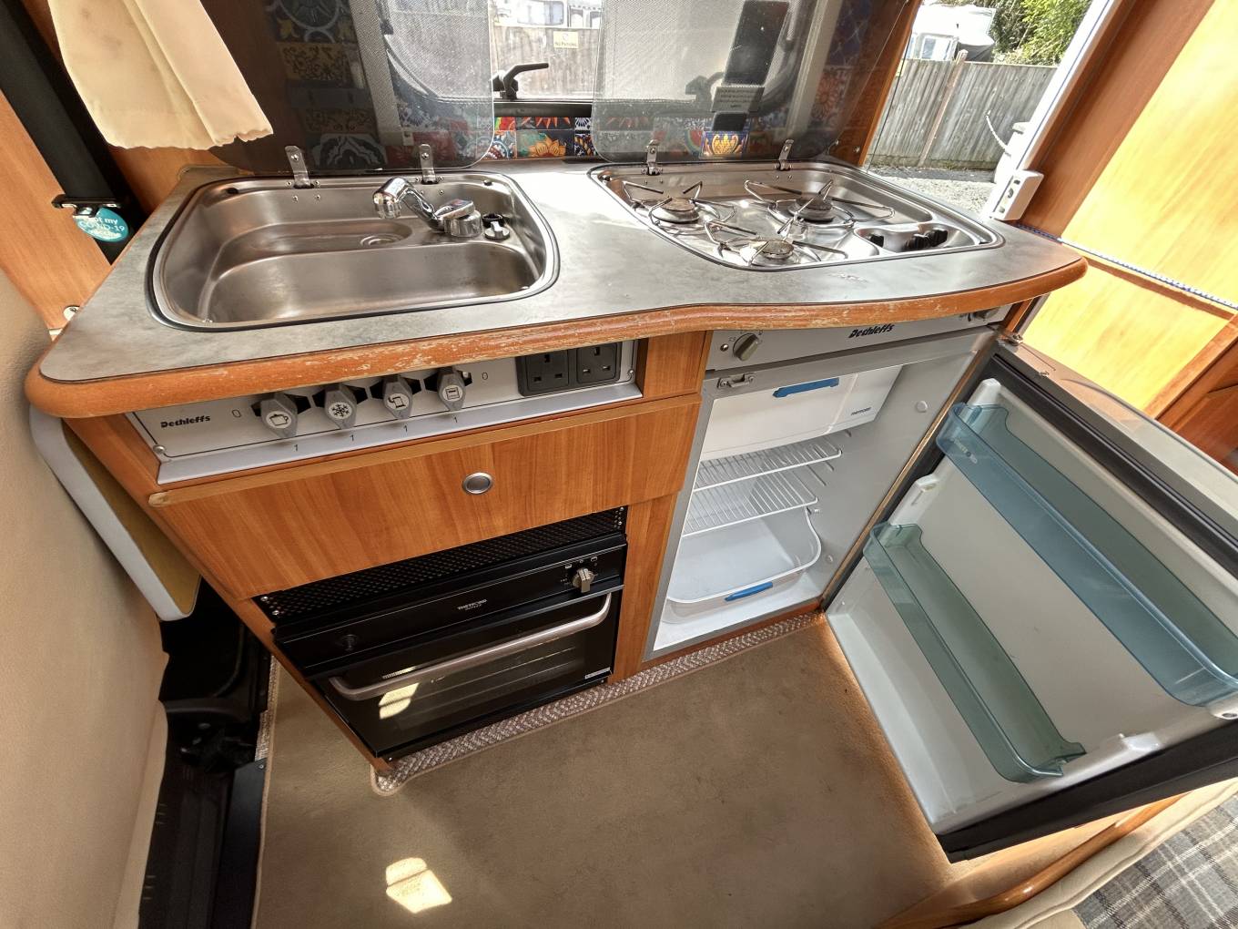 Layout - Starting at the rear you have a large spacious area that is home to 2 single beds/large double bed and surrounding storage lockers. In front of the bedding area you will find the washroom which has everything you need including shower, wash basin, toilet cassette and vanity mirrors. Across from the washroom you have a large wardrobe space. The kitchen area is mid habitation and includes a three way fridge with freezer space, sink with hot and cold mixer tap, 3 gas rings and an oven/grill combi and more storage.