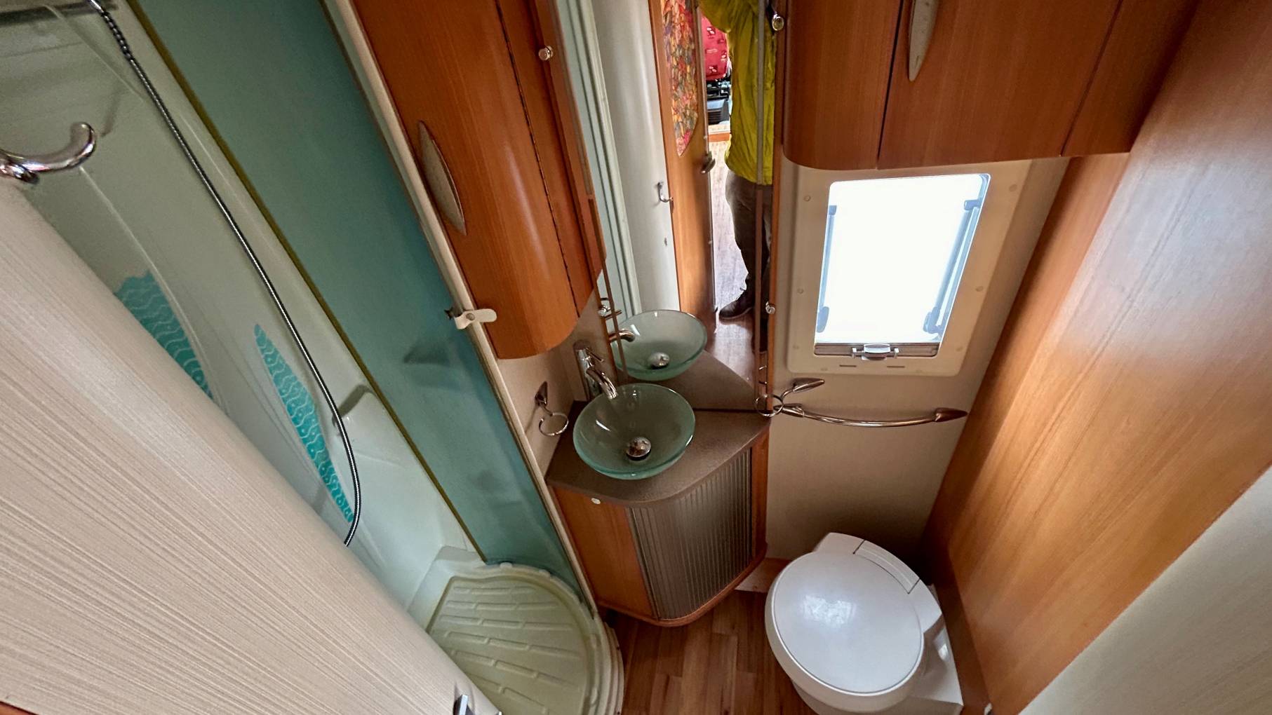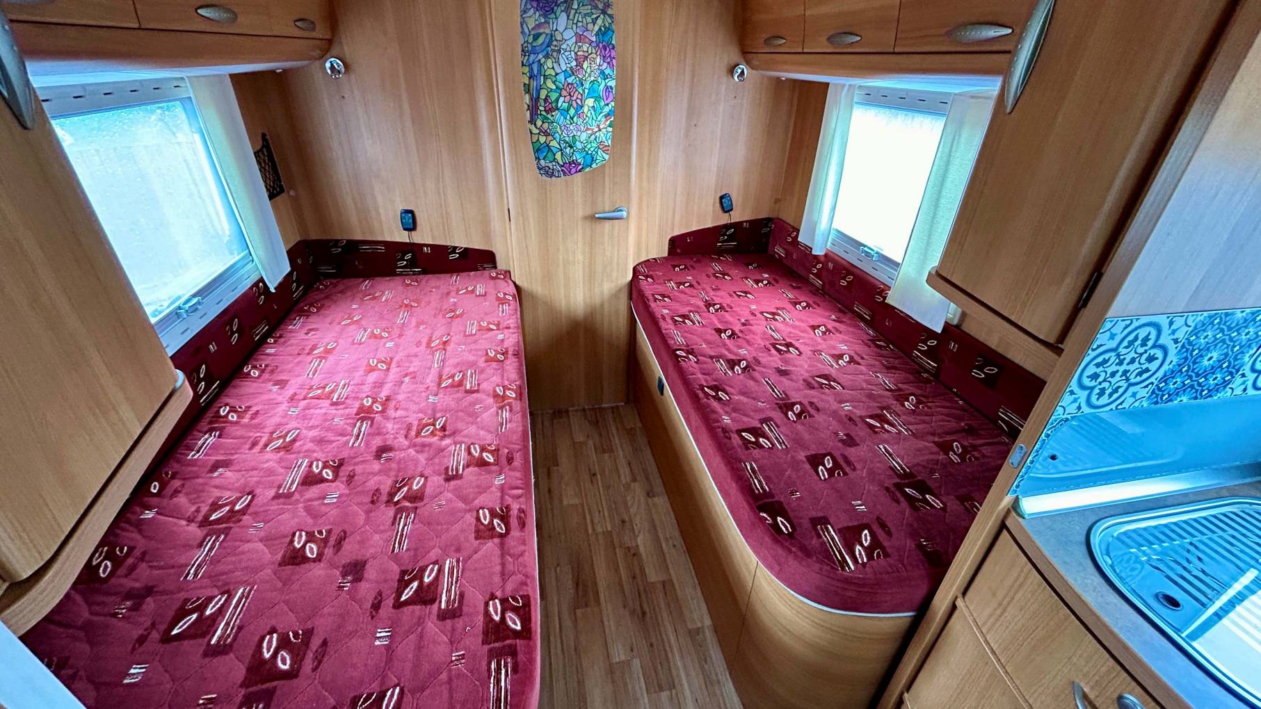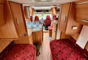 Designed for comfort, this 3-berth motorhome features a highly sought-after twin single bed layout and a spacious full-width rear bathroom, complete with a separate shower, toilet, and vanity sink.