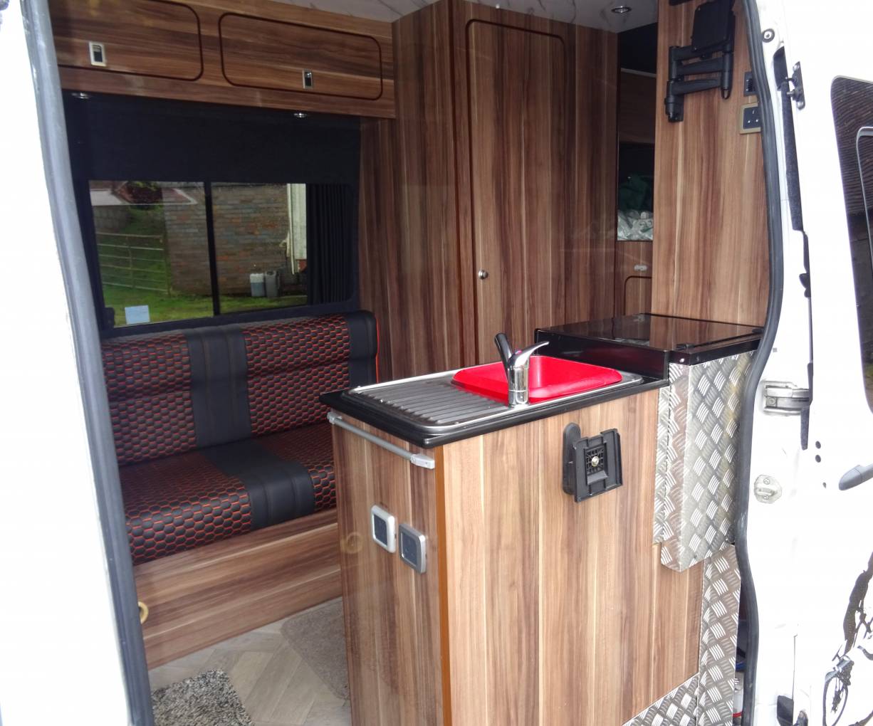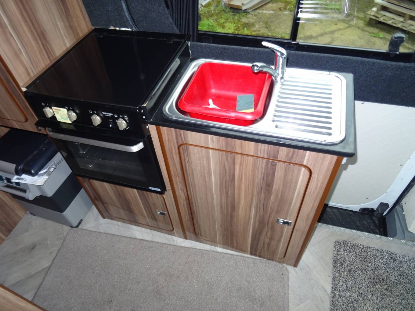 seat with table. Cooker, gas hob and Total 555 lt cool box.