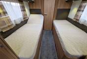 Next is the sleeping arrangements which are arguably most important in a motorhome, and this Adria offers you a comfortable pair of 6’8” x 2’8” single beds.This is perfect if you’re a couple who want the convenience of being able to access the washroom at night without waking your partner. The mattresses here are thick and comfortable, and both of the bed heads lift to help prop you up if you want to read at night. USB sockets under the lockers at the foot of each bed are a useful addition. The rear berths can be shut off from the rest of the ’van by a concertina screen giving some all-important privacy.